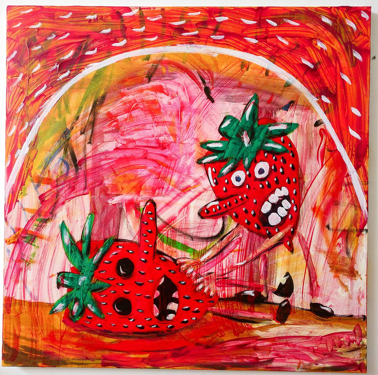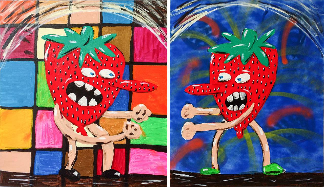 התותים נשארו איתי כי יש בהם כמה דברים: קודם כל יש להם לוק קצת של ראש, עם הסנטר הצר והמצח הרחב וציצת השיער הירוקה למעלה. הם מועמדים טובים להאנשה, והם גם מכילים בתוכם סט שלם של משמעויות וקונוטציות שאני יכול להשתמש בהם. יש בהם את הארוטיקה ואת הריקבון גלומים יחד, כלומר בארוחה רומנטית תמיד יהיו תותים ושמפניה, אבל בתחתית קופסת התותים תמיד יהיו כמעט חצי מהתותים רקובים לגמרי. והם גם מאוד איקוניים בלוק שלהם