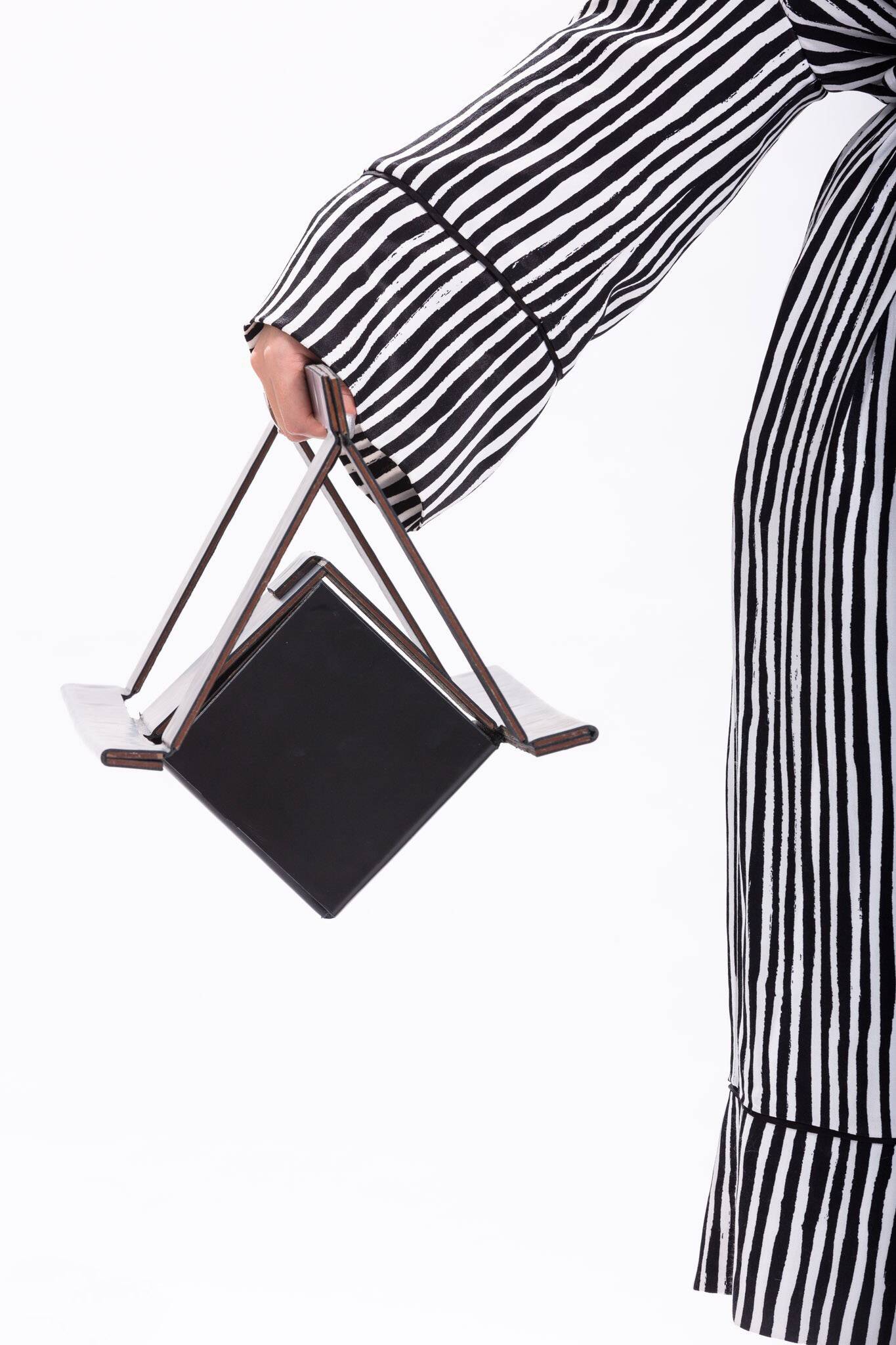 יצרתי תיקים שיכולים להפוך בכמה קיפולים פשוטים מצורה שטוחה לחלוטין לצורה תלת־ממדת. השתמשתי ב־MDF, שהיתרון העיקרי שלו היה המשקל. לאחר מכן בוצעו מספר ניסיונות בחיתוך לייזר והוספת מגנטים שמאפשרים את הסגירה ואת הפתיחה של התיקים. כשכבה חיצונית השתמשתי בעור, ששימש כצירים בין החלקים ואיפשר את קיפולם