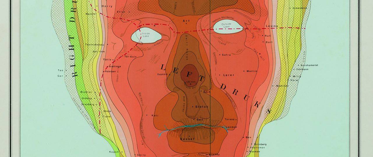 ״סוג אחר של עבודות שיש בתערוכה זה דיוקנאות ממפות, החל ממיכאל דרוקס, שאני מניחה שהוא היה הראשון שעשה את זה, לצד אמנים כמו דוד טרטקובר או דני קרמן ואחרים. המפה בעבודות האלו היא חלק מהזהות שלהם, מהדימוי העצמי, מהתודעה; היא מה שאני מציג כלפי העולם״.