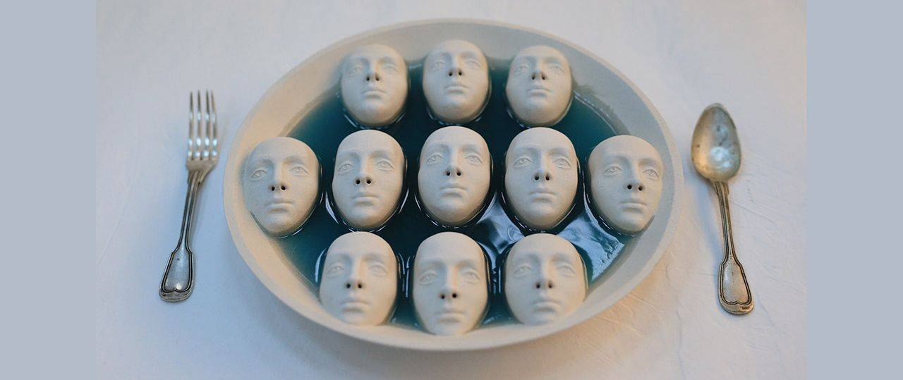 הראשון, שולחן ארוך, ערוך ל״ארוחה״, ועליו, בשני קצותיו, צלחות וסכו״ם. בתוך הצלחות נוצקו ראשים שפניהם אל המתבונן. שני כיסאות ריקים מוצבים מול הצלחות. השאלה למי מחכים הכיסאות נשארת פתוחה לדמיונו ולהשקפת עולמו של כל צופה. השני, סרט וידיאו שבו עמודים עשויים מחומר צומחים כלפי מעלה, ובשיא התפתחותם הם מקופדים באלימות על ידי מכשיר חד. השלישי, הצבה של טורי לוחיות מתכת שעליהן מוטבעים מספרים.