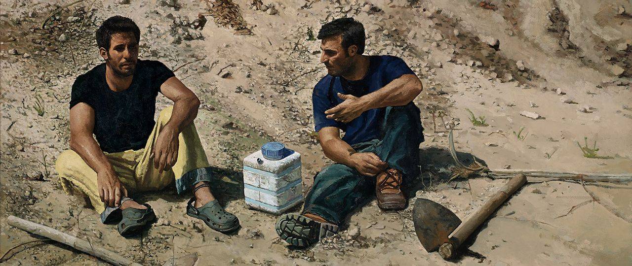 חומרים היסטוריים ואקטואליים, פוליטיים וחברתיים רוחשים מתחת לפני השטח של ציור מרהיב ביופיו, שנסוכה עליו רוח של מקומיות, אך גם זרות גדולה. האווירה השגרתית לכאורה של הווי פרברי או של פסטורליה כפרית על רקע הנוף והאור המקומיים טעונה במתח מטריד, הנוצר מהמפגש עם המקור המיתולוגי והריחוק ממנו בעת ובעונה אחת.