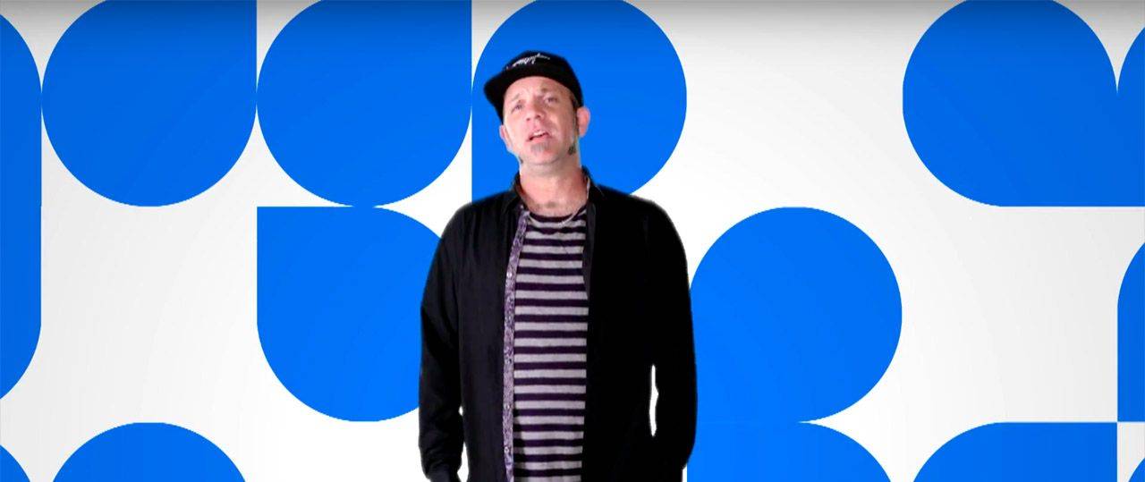 דוד טרטקובר מציג את כרזת יום העצמאות שעיצב לרגל 30 שנות עצמאות. צילום מסך