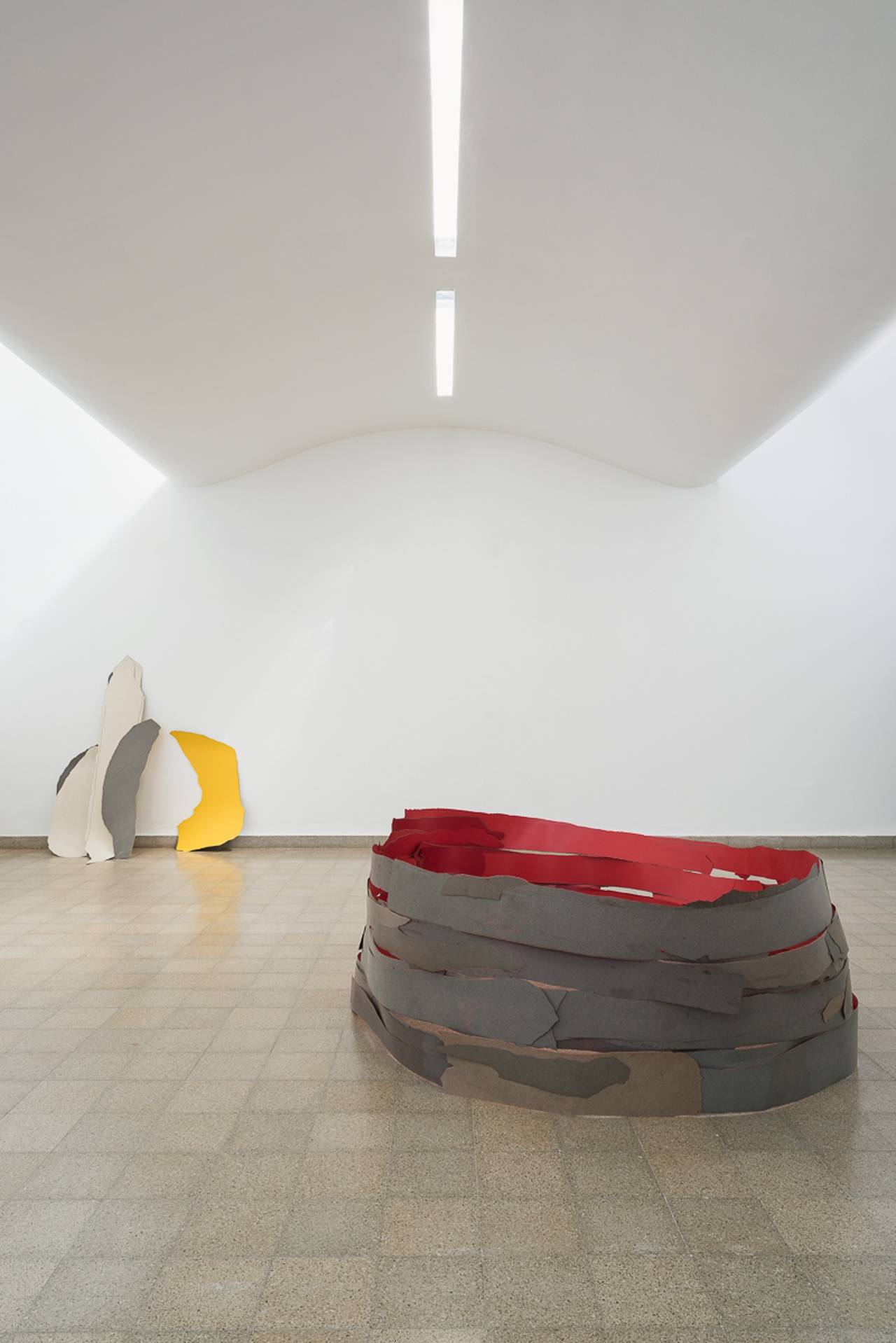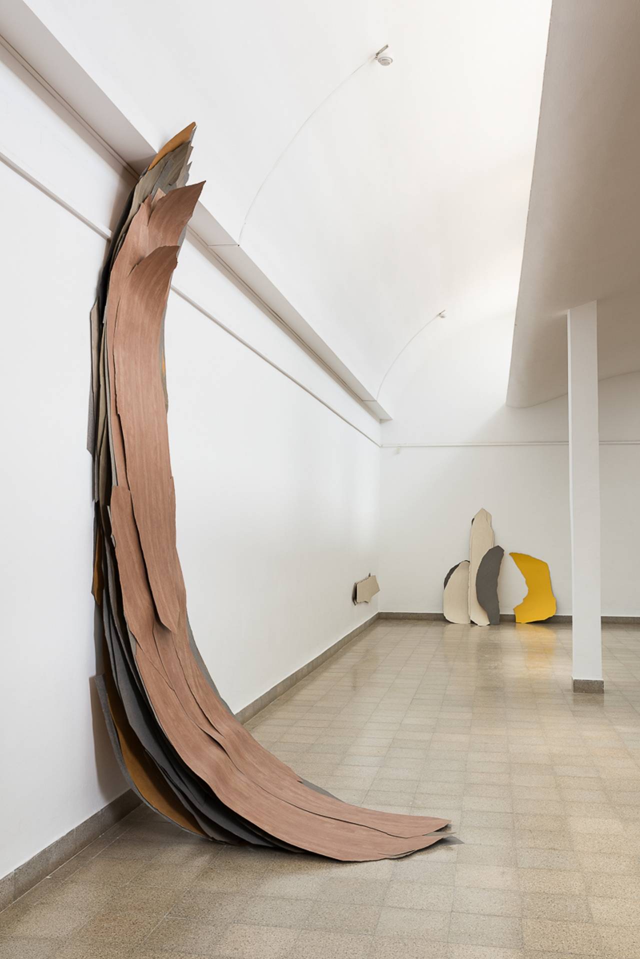 הלובי שכשמו כן הוא, הוא מקום מיוחד, מבין מקומות התצוגה היחידים בעיר שהים מורגש בהם. אנשים הולכים וחוזרים לים מול חלון הראווה שלו לאורך כל היום. הייחודיות הזו הניעה אותי לתגובה. הלובי משמש כחלון תצוגה שהתערוכה כולה נצפית מחלון הכניסה ומתקשרת עם ההולכים והשבים. ניסיתי לשוות למיצב הזה תכונה של גל שמגיע ונעלם כלעומת שבא, נענה לרצונה של הרוח. מתבלבל אם הוא רוצה להיות הפנים או החוץ.