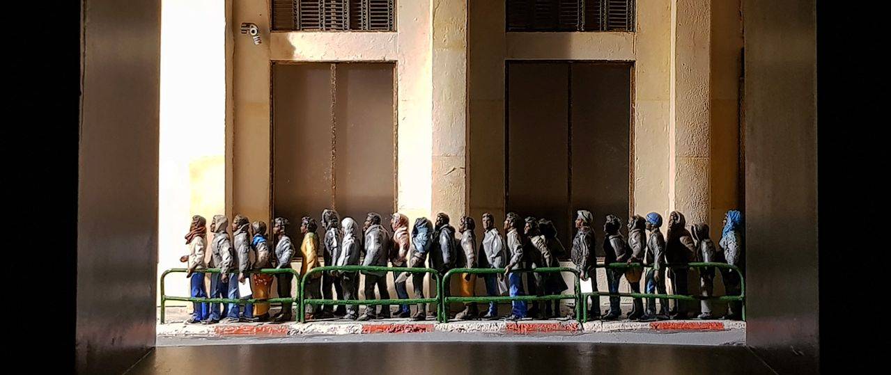 בדיורמה אחת מומחש התור מול לשכת משרד הפנים בדרום תל אביב. זהו מצב של לימבו. זה תור שלא מתקדם לשום מקום ושמחזיק פליטים במצב פיזי ונפשי מסוים. הדבר היחידי שנע בתוך הסצנה הוא מקור האור שמסתובב מסביב לכל הסצנה ומדמה מעבר בין יום ללילה, יום רודף יום. רק הצללים של הדמויות משתנים, ותחושת הזמן האבוד מקפיאה וחודרת. אנשים מביטים בדיורמה הזאת דקות ארוכות.. .