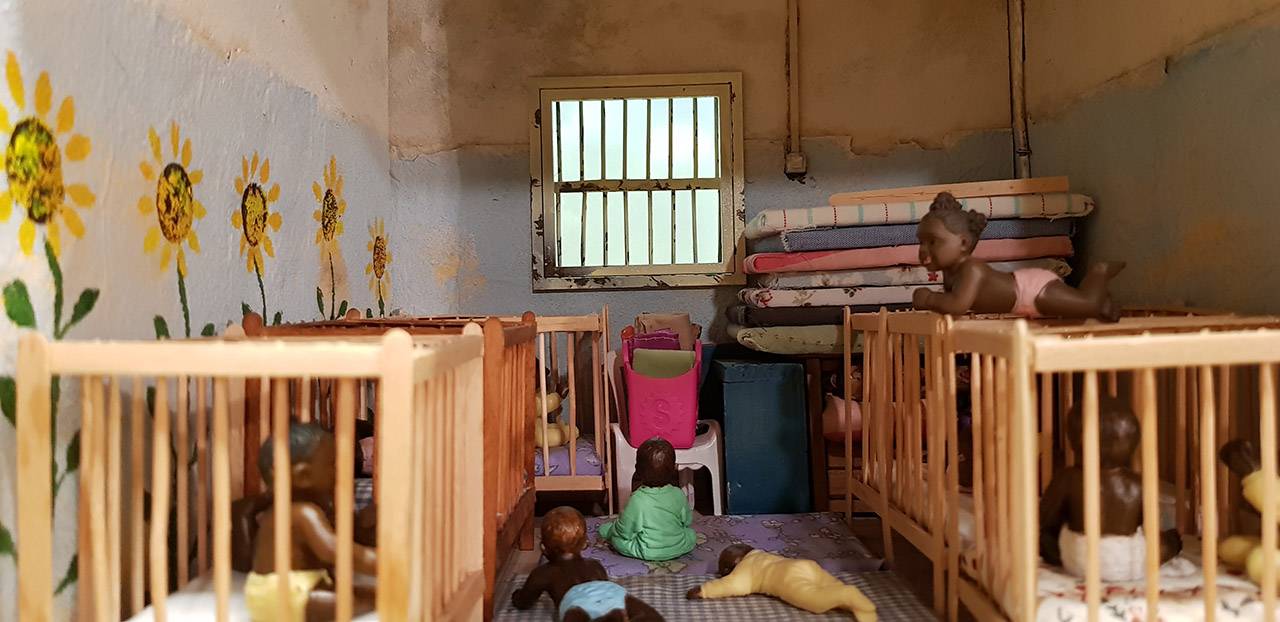 מחסן ילדים היא דיורמה נוספת שלוקחת תמונה מוכרת לציבור, ומאפשרת מבט אחר על המצב. חדרון מוזנח מדרום תל אביב המשמש כגן לילדי הפליטים, הוצא מתוך ההקשר הפיזי המציאותי והונח בתוך שדה חמניות ילדותי ומואר. יש קושי רב להכיל את התופעה הזאת. אני מכבד ביותר את אותם אנשים מדהימים בציבור הישראלי שמגיעים לאותם גנים, מטפלים בילדים ונותנים מעצמם. ההצבה בתוך שדה החמניות מייצגת תופעה אנושית שבה על מנת להכיל אירוע מסוים אני נדרש לעטוף אותו בחומת מגן – בפילטר מסוים, באיזשהו אמצעי מתווך. אף שהחדרון עם התינוקות ממוקם במרכז הדיורמה, העין של הצופה פוגשת בעיקר את שדה החמניות שבשוליים.