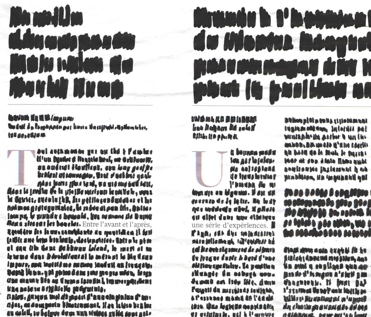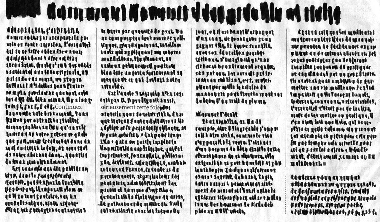 הפרויקט הבא שלה השתמש בביקורות ספרות בעיתונים. היא קראה טורים של ביקורת, וזיהתה משפטים לא צפויים במעבר מטור לטור – במקום לקרוא אנכית, טור אחר טור, כמו שמקובל בקריאת עיתונים, היא קראה אופקית, כמו בספרות. השורה קופצת מעל הרווח, אל השורה שמימינה. ״רציתי להוציא לאור את הסודות שנמצאים שם, נתונים למבט שלנו – אבל אנחנו לא מביטים בהם, לא מודעים להם. גיליתי שם שירה״.