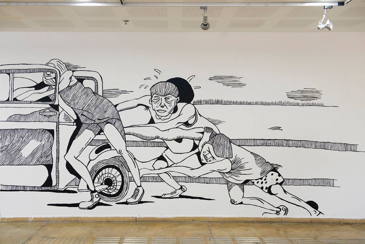 התערוכה הפותחת את עונת התערוכות בגלריה של המרכז האקדמי ויצו חיפה לשנה זו, מפגישה לראשונה לתערוכה קבוצתית ארבעה ציירי רחוב מהדור הצעיר, המתגוררים בחיפה ופעילים בשנים האחרונות במרחב האורבני של העיר, כמו גם בפרויקטים נוספים של ציורי קיר ברחבי הארץ. הארבעה – Erezoo / Zivink / Swan / Mashiah – המוצגים בכינויים כציירי רחוב, הם מעצבים, אמנים פלסטיים וציירי גרפיטי פעילים, מכירים זה את זה זמן רב מזירת הציור האורבני, ושיתפו פעולה בהרכבים כאלה ואחרים במיזמי-חוץ שונים.