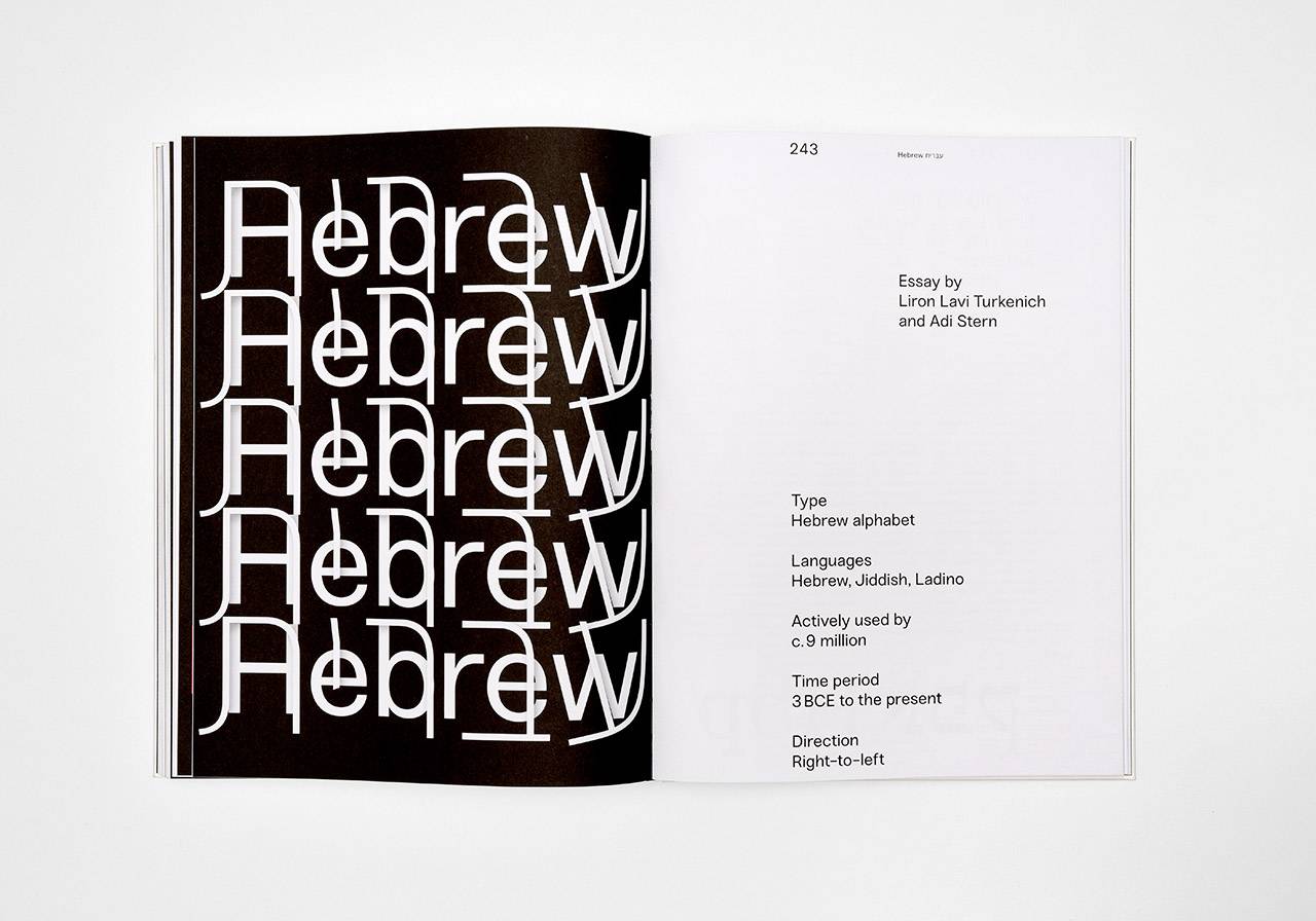 הספר דן בהבטים חברתיים־תרבותיים, בנושאים טכניים ובשיקולים מעשיים הנוגעים למערכות כתיבה ולעיצוב טיפוגרפי רב־לשוני. הוא מחולק למספר פרקים: כל פרק עוסק בשפה אחרת שאינה לטינית, ובין הפרקים גם אחד שמוקדש לשפה העברית, ושבו מוצגות עבודות שבהן הכתב העברי מקיים דיאלוג עם שפות אחרות, לרוב עם אנגלית או ערבית. כל פרק בספר נפתח במאמר, ואת המאמר שעוסק בטיפוגרפיה העברית חיברו נשיא בצלאל, המעצב פרופ׳ עדי שטרן, יחד עם המעצבת והחוקרת לירון לביא טורקניץ׳.