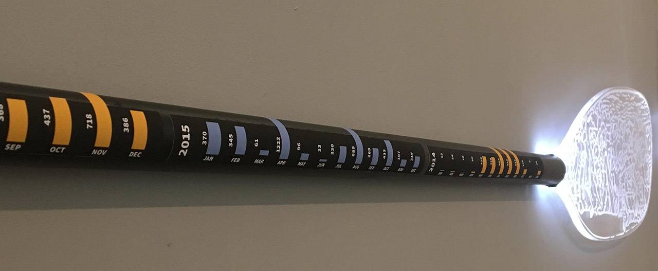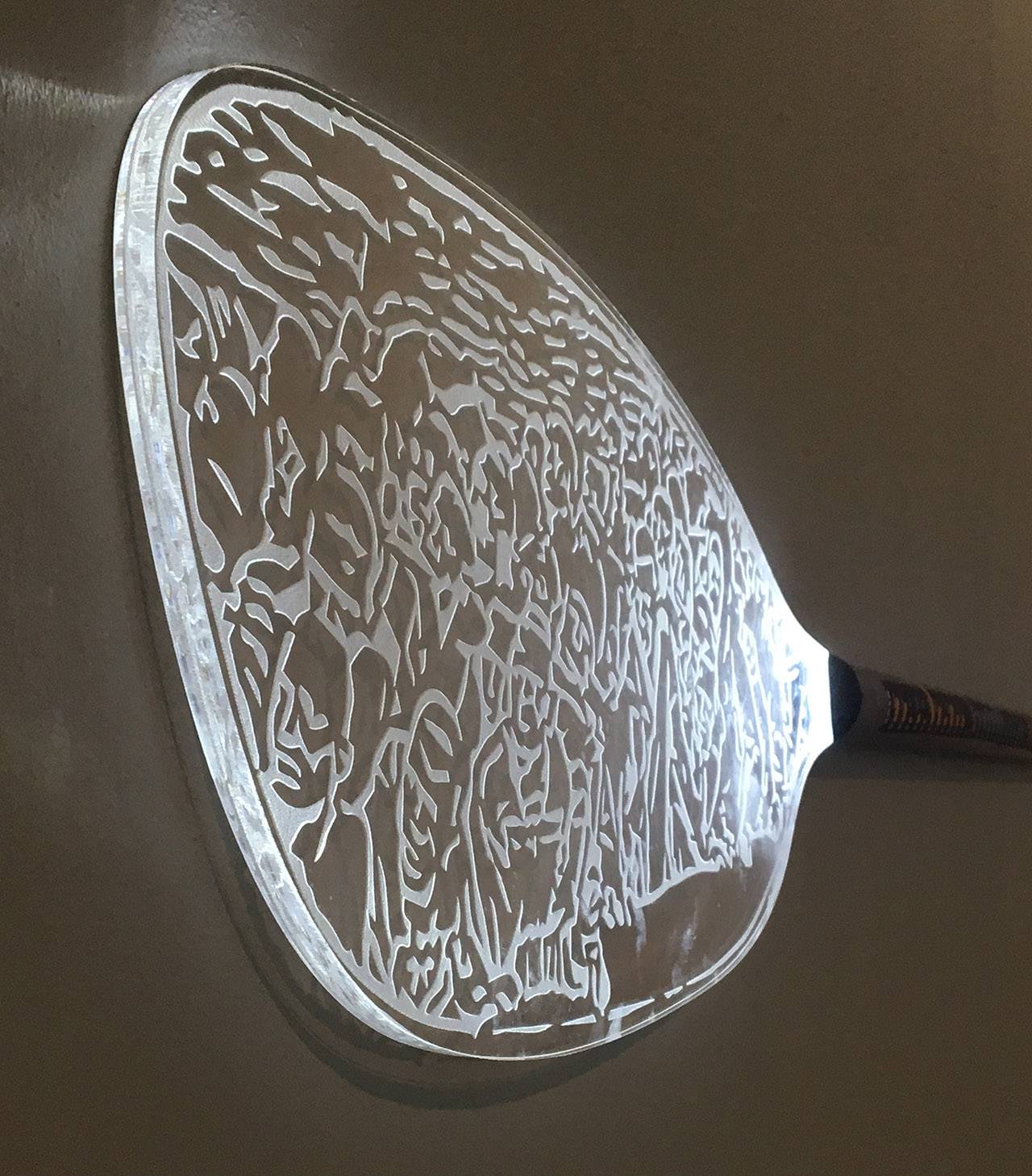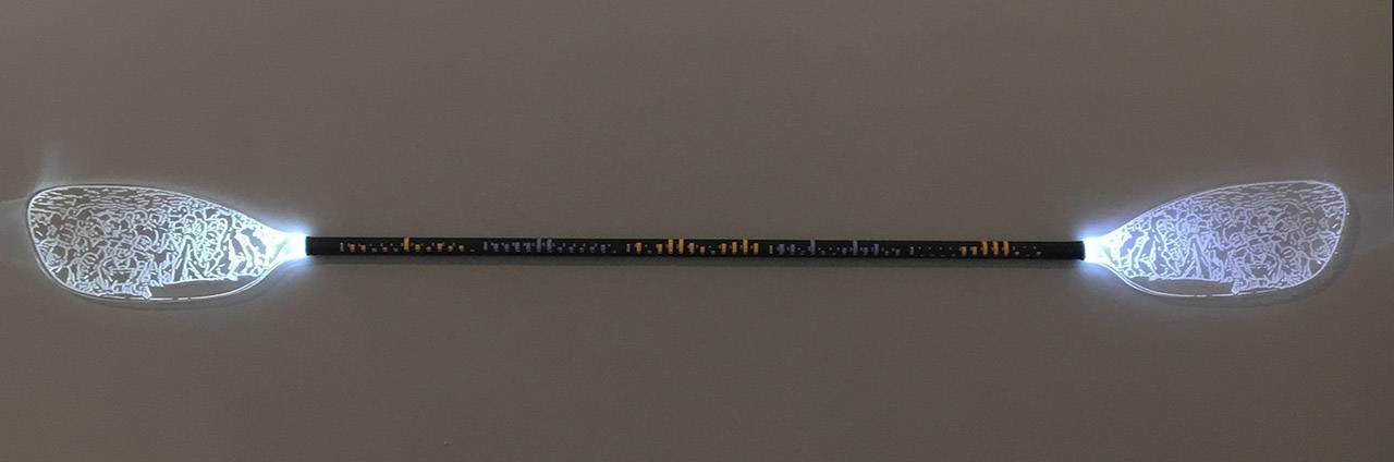 ״משוט״. מוט: אלומינום; כנפיים: פרספקס, תאורת לד. מתוך התערוכה ״אוביקט מעבר״; אוצרת: ענת גטניו. גלריה BY5, בר יוחאי 5 תל אביב, עד 12.1.19