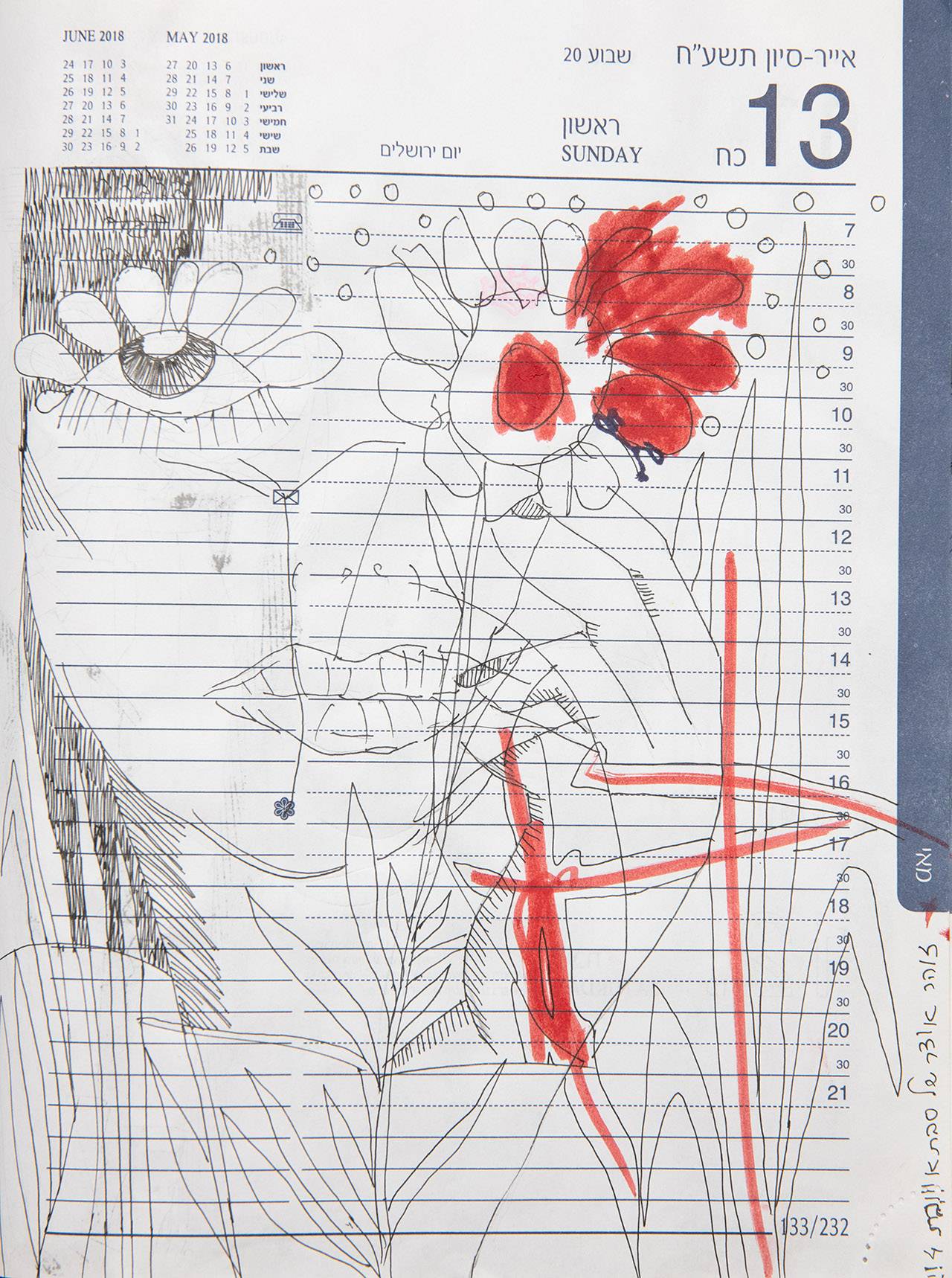 הבנתי שחלק מהעבודות הן כאלו שצוירו על יומן משרדי אישי (כזה של פעם, ההפך מדיגיטלי). איך זה קרה?
