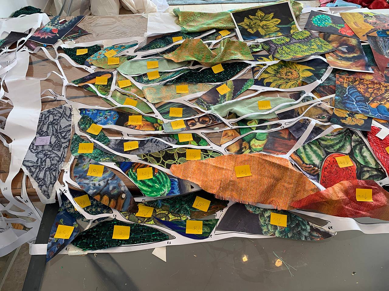 לגמרי: אני תולה אותן על גופי או בחלל אבל אני ״אוצר״ אותו, בעל כורחו. היורשים, כולם, אומרים שהוא היה מאוד גאה בי… אבל עדיין אני חותך את ציוריו ומשנה את תכניו, מחליט על ה״יחסים״ ביני לבינו, בין החומרים שלי ושלו, בין היצירה שלנו, שלפרקים משתלבת והרמונית ולפרקים מנסה ליצור שלם ולא בטוח שמצליחה
