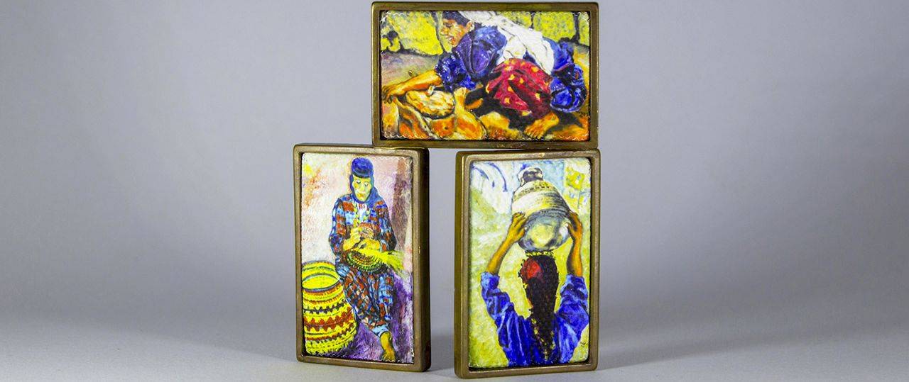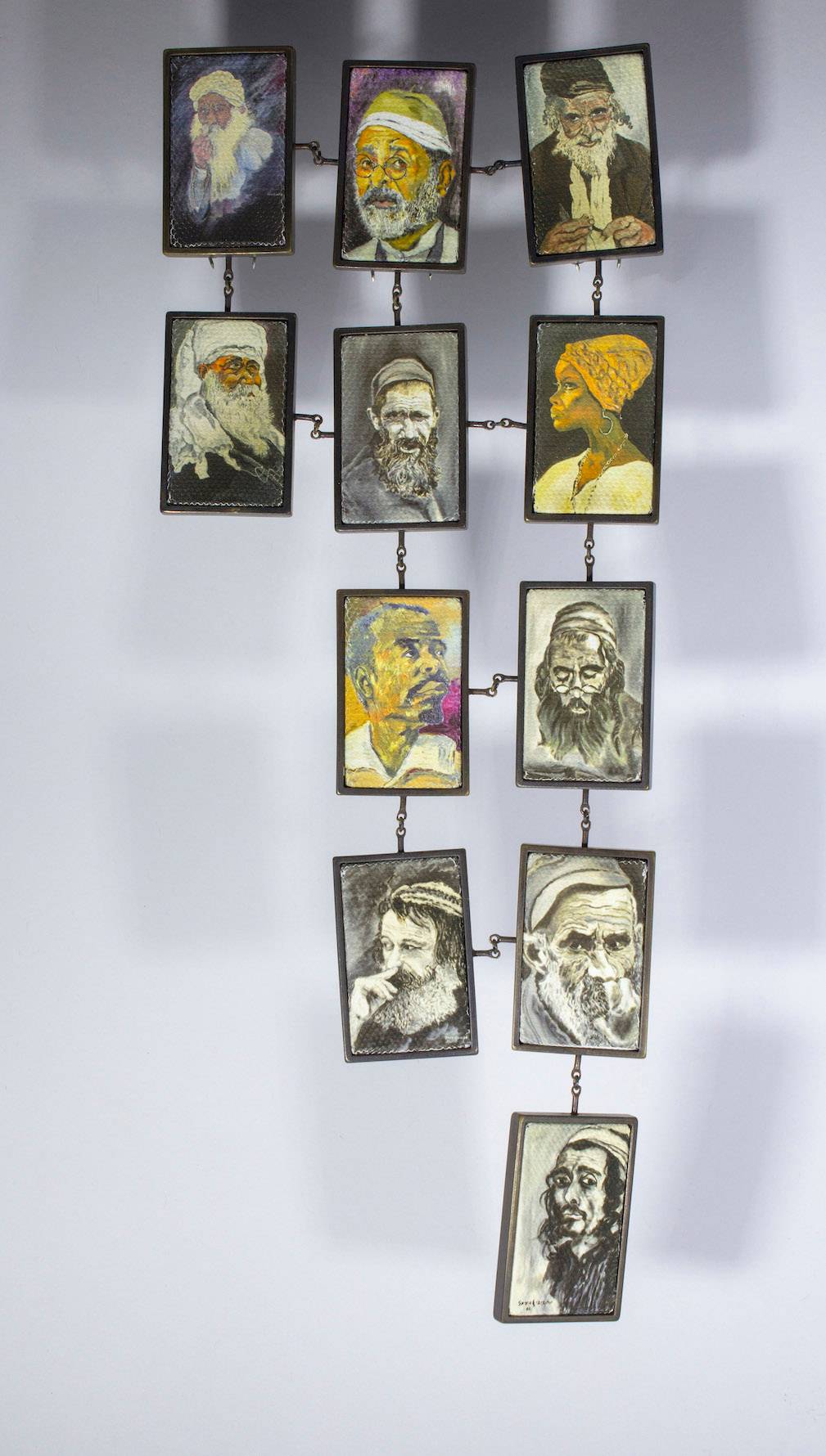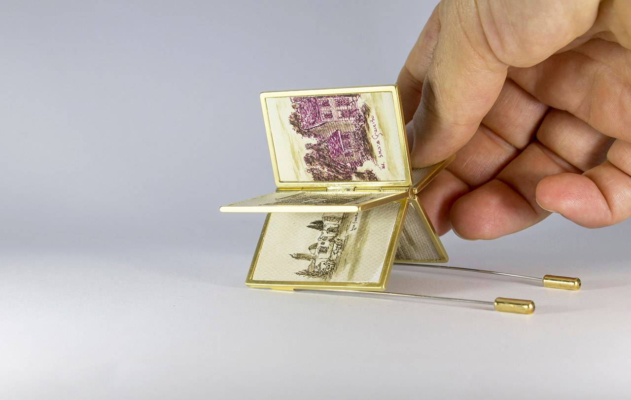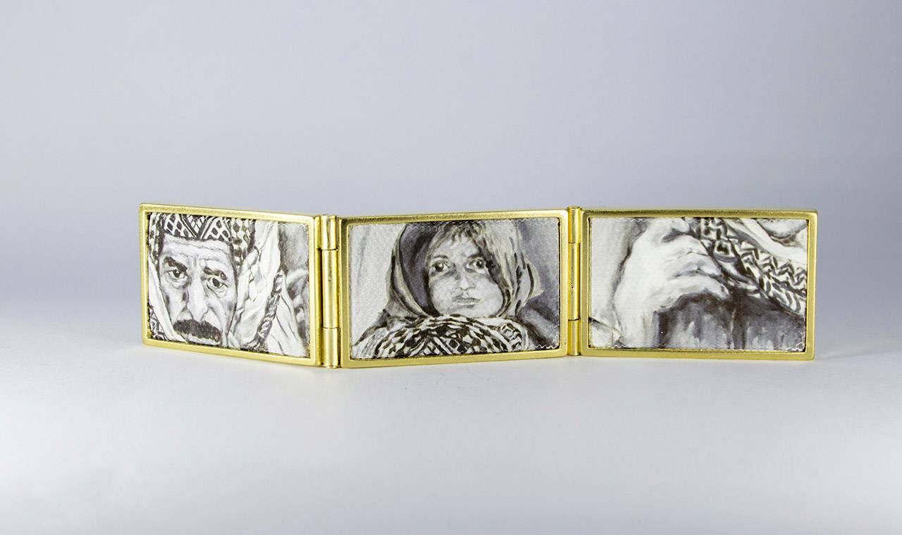 בנוסף אציג סדרת סיכות, שבהן לקחתי את הציורים של סבא שלי, בחלקם התערבתי ואת חלקם שימרתי בשלמותם, הקטנתי ושיבצתי בקונסטרוקציה שהלחמתי/צרפתי בהשראת הציור שלו שבחרתי לאצור על הגוף (ותהיה גם סדרה של תכשיטים שמשלבים בין מתכות לבדים)