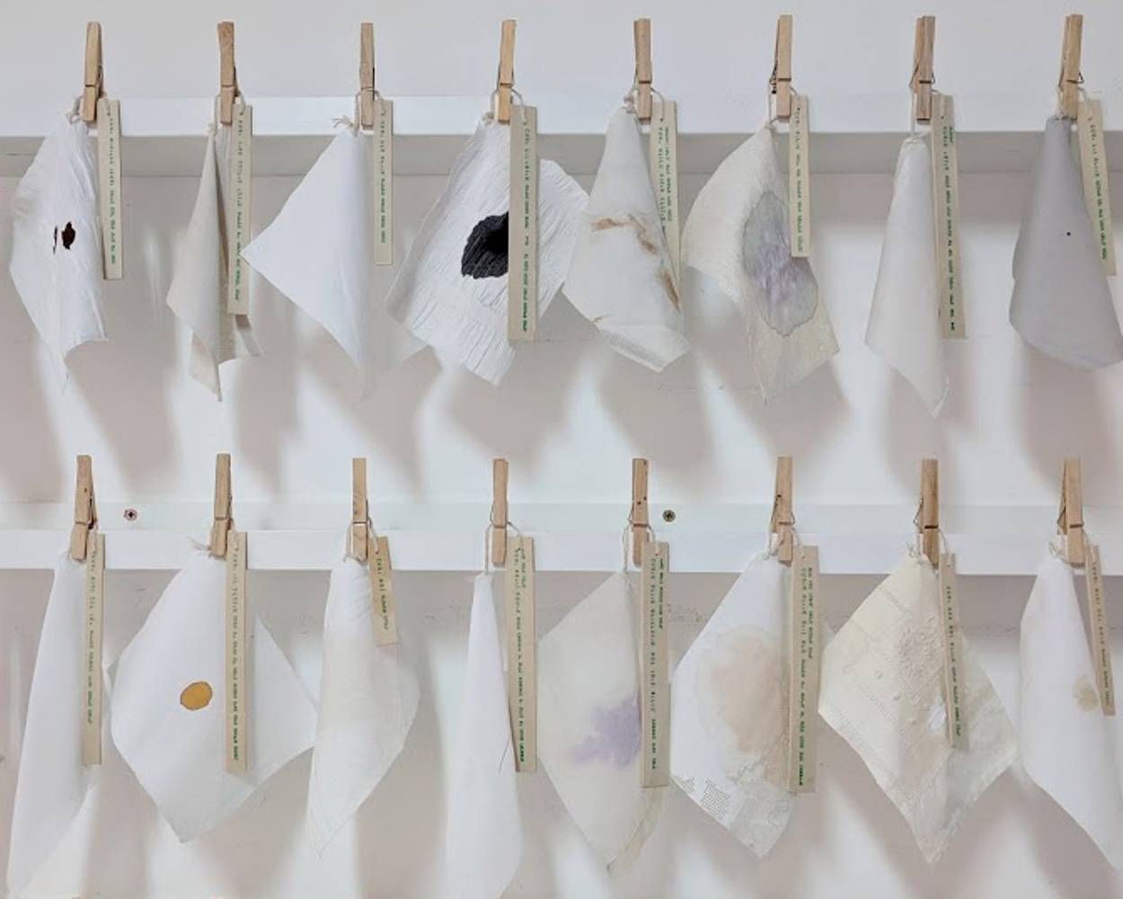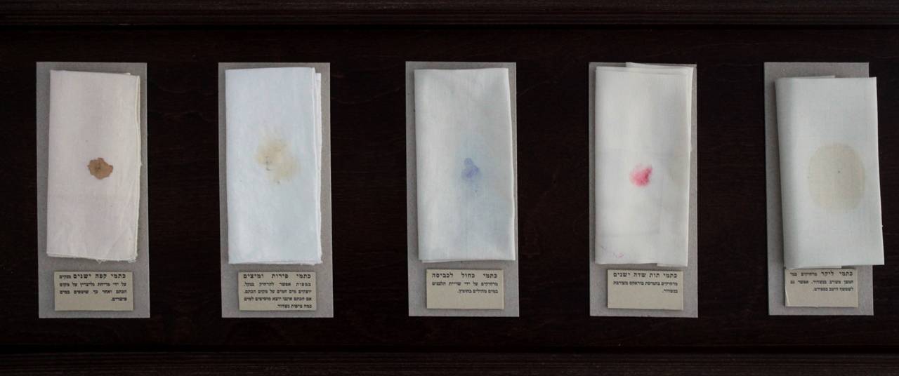 בלקסיקון למשק הבית מ־1940 מצאתי רשימה של כתמים והוראות להסרתם באמצעות חומרי ניקוי וכימיקלים מאותה תקופה. סוגי הכתמים, הבדים, אמצעי הניקוי והשפה העברית שהייתה נהוגה אז, היו בשבילי אמצעי למיפוי של התקופה בה ניהלו סבותי את משק ביתן בתל אביב. העיסוק בכתמים והחרדה מפני הלכלוך עוררו שאלות קיומיות על חברת המהגרים שהגיעה באותן שנים לפלשתינה־א״י, ועוררו תהיות לגבי הרגלי הניקיון וההגיינה, על הפחדים והחלומות, ועל ההשפעות ארוכות הטווח שיש לעיסוק בכתמים.