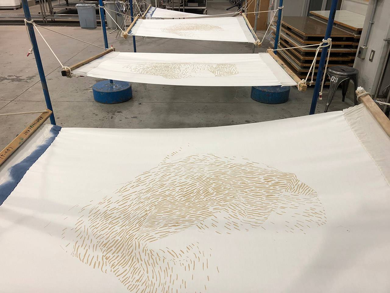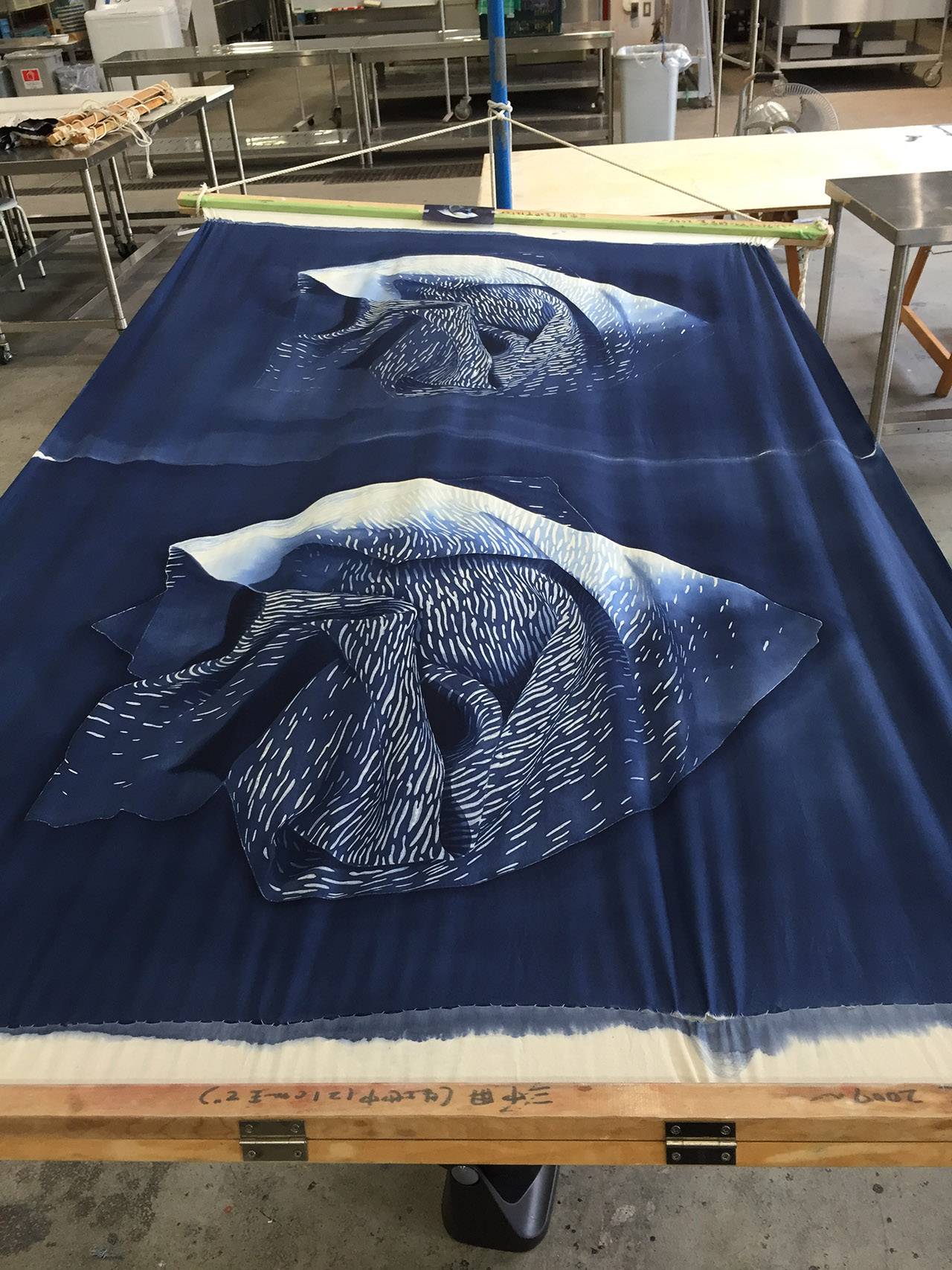 בארץ עבדתי בעיקר עם הדפס משי, עניין אותי לבוא ליפן וללמוד את הטכניקות היפניות המסורתיות שמתבססות על חומרים טבעיים, שמהן התפתח בהמשך הדפס המשי. בשנתיים וחצי האחרונות אני עובדת בטכניקה מסורתית יפנית בשם קטזומה, שמתבססת על צביעה בעבודה ידנית סיזיפית עם סטנסיל וחומרים טבעיים כמו אורז (ricepaste), סויה ואצות ים
