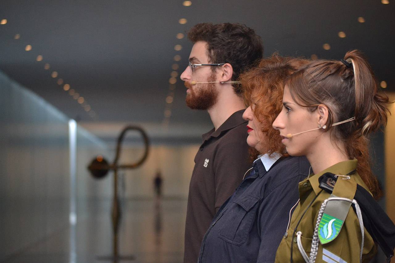 ״אבל כשזה נכנס לתוך הקשר יהודי והצבא מנסה לייצר את הדוקטרינציה שלו, פתאום הפרשנות היא שכולנו עם אחד והמטרה הכי חשובה היא להיות חזקים, כי רק כך נשמור על היהדות שלנו. לכאורה הצבא עורך סיורים במוזיאון כדי שחיילים יספגו אמנות, אבל בפועל לוקחים את החיילים בעיקר לאגף לתרבות יהודית או להיכל הספר״.