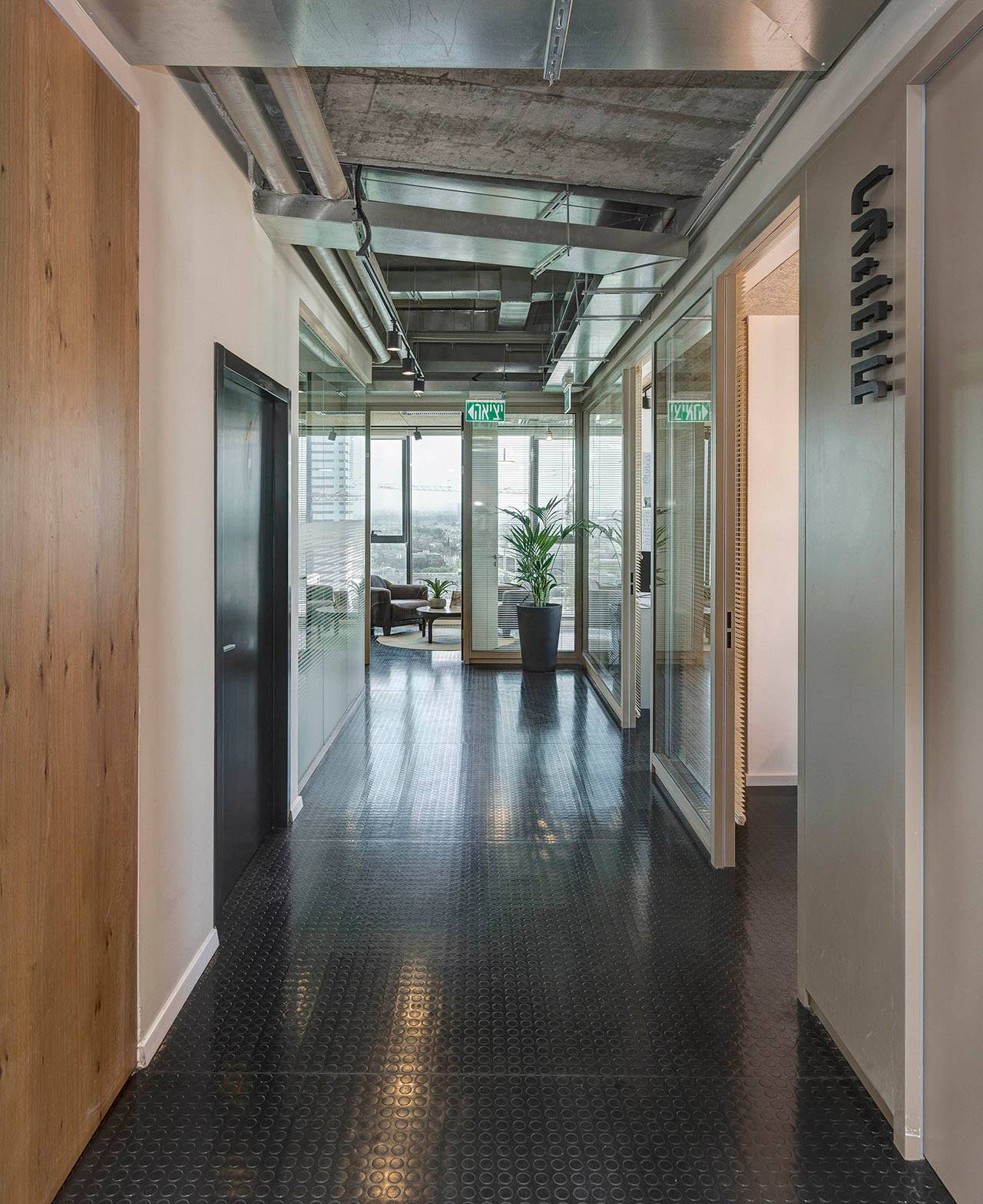 החלל חולק לחדרים לעובדים יחידים – מנהלים בעיקר – ולחדרים שמיועדים לצמד עובדים או לצוותים גדולים יותר, שקשורים בעבודה שוטפת. חלק מהם תוכנן עם זיגוג בלבד, ללא דלתות, על מנת להקנות לחלל תחושת open space.