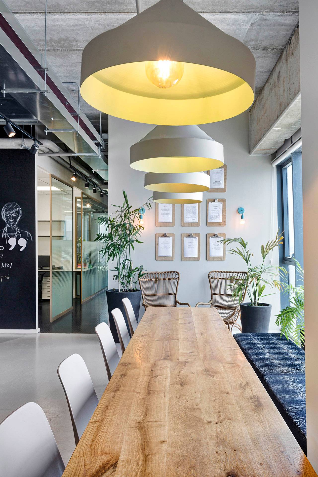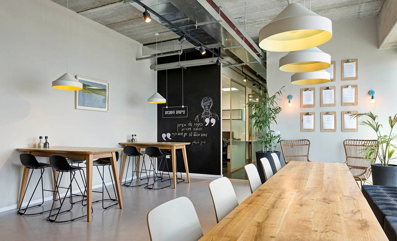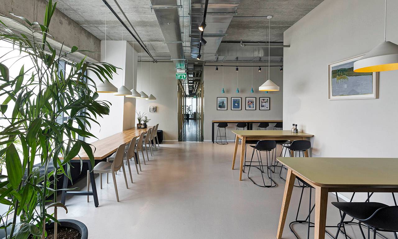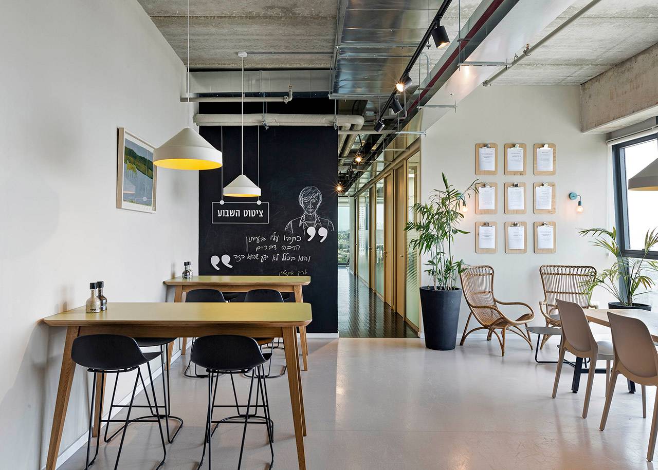 שני מרחבים נוספים, חדרי ישיבות ואזור האוכל, תוכננו כמקומות מפגש לכמה שיותר אנשי צוות. חדר הישיבות הראשי ממוקם בקרבת הקבלה ופונה אל הנוף המערבי של תל אביב, ובצמוד אליו תוכנן ״סלון״ או ״חדר עיתונים״, שמשמש קבוצות מיקוד וסיעור מוחות, כמו גם מקום למפגשים בלתי רשמיים. בין שני חללים אלה מפרידה מחיצה מתקפלת, שמאפשרת לאחד אותם לכדי מרחב גדול, כשנערכים מפגשים של כלל אנשי החברה.