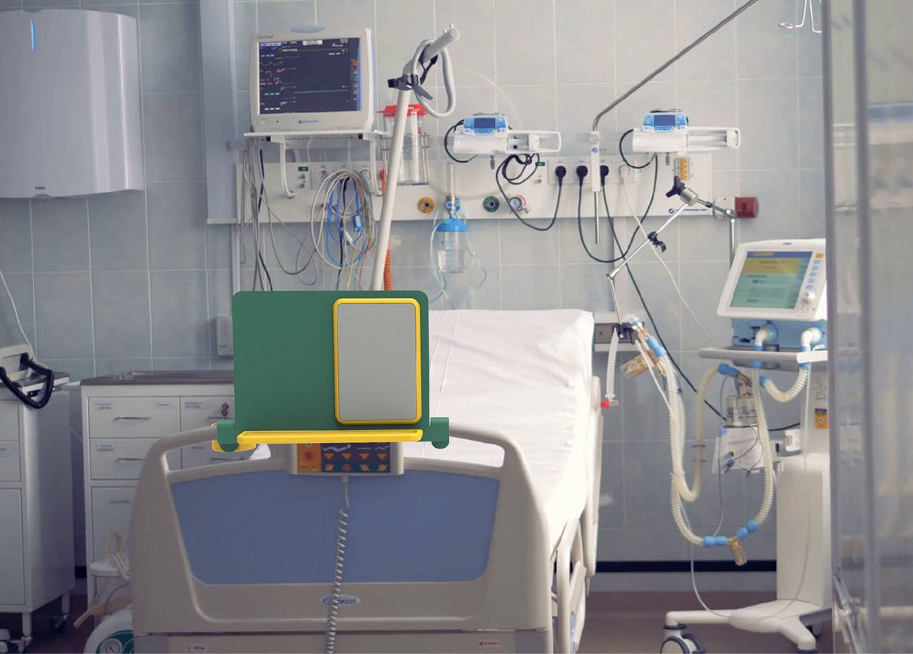 אביעד עוזרי, לוח המתחבר לדופן מיטת בית החולים. צילומים: מ״ל