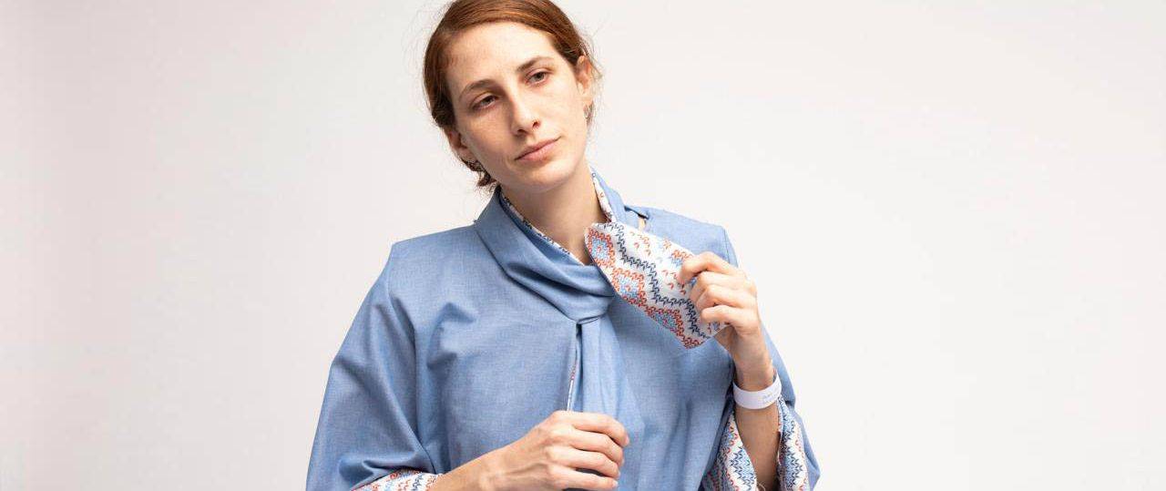 שירה מלמד בחנה את נושא אובדן הזהות בעת האישפוז בבית החולים, שבו מבחינה חיצונית כל המטופלים נעשים זהים זה לזה בלבושם. בפרויקט שלה היא מציעה עיצוב חדש לחלוק בית החולים, והפיכתו לבגד מכבד ופרקטי המאפשר לחולה לייצג את עצמו כלפי חוץ ולבדל את עצמו מאחרים. לשם כך היא הוסיפה והדגישה אלמנטים הלקוחים מביגוד יום־יומי אוניברסלי כמו צווארון, כיס, חגורה והאפשרות לכסות את החלק האחורי של הגוף, תוך שימוש בבד הג׳ינס בעבור החלוק עצמו ושילובו עם דפוסים מעניינים, חיוניים ובעלי אופי.