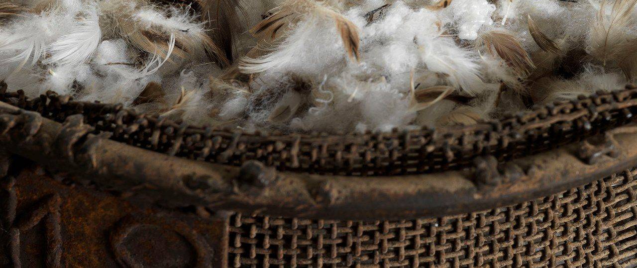 ״מריטה״ מורכבת מסל מתכת שנועד במקור לחישול חלקי מתכת בטמפרטורות גבוהות, ובתוכו נוצות המשמשות למילוי שמיכות פוך. החיבור בין החומרים מגלם תכונות של קשיחות ונוקשות לצד מגע רך ומגונן. הספרה ״18״ מופיעה בתבליט על הסל, אולם לא הייתי מודעת לפרט זה כאשר בחרתי את הסל במגרש למיחזור מתכות. רק בהגיעו לסטודיו ראיתי את הספרות אשר קשרו אותי, באסוציאציה מידית – לגיל הגיוס. מרגע זה הפך החפץ לנשא של עיסוק בנושא כה מרכזי בחיינו בארץ – הצבא והשפעתו על אופי החברה, מלחמה וכאביה. דרך נוצות הפוך המפוזרות אני מגיבה למצבם של הורים, אנחנו, הנאלצים לתת את ילדינו ללא נודע המאיים. זהו ניסיון פרום, בלתי אפשרי, לשמור, להגן, אל מול הכאב וסכנת המוות שמרחפים מעל.
