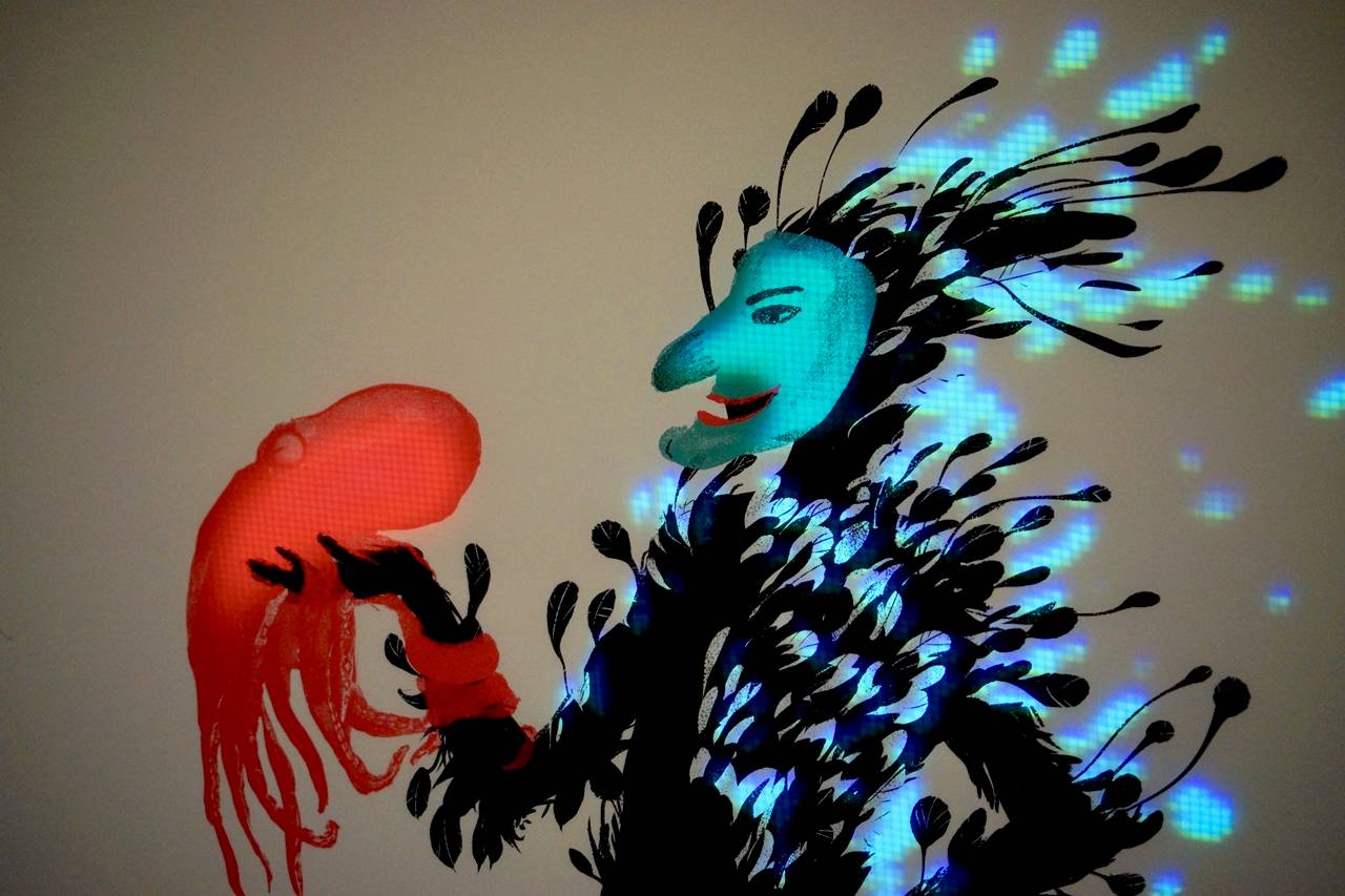 כמעט 🙂 זו הפעם השניה. הרי הקריירה שלי היא בעיצוב בתנועה ובאנימציה, והפעם החלטתי לא לזנוח את האנימציה אלא לשלב אותה באיור המודפס – ליצור דימוי אחד שלא יכול להתקיים שלא באמצעות שתי המדיות. אני חושב שכמעצב בתנועה השלב הטבעי בהתפתחות שלי הוא לפרוץ את גבולות המסך. ההקרנה מאפשרת את זה.
