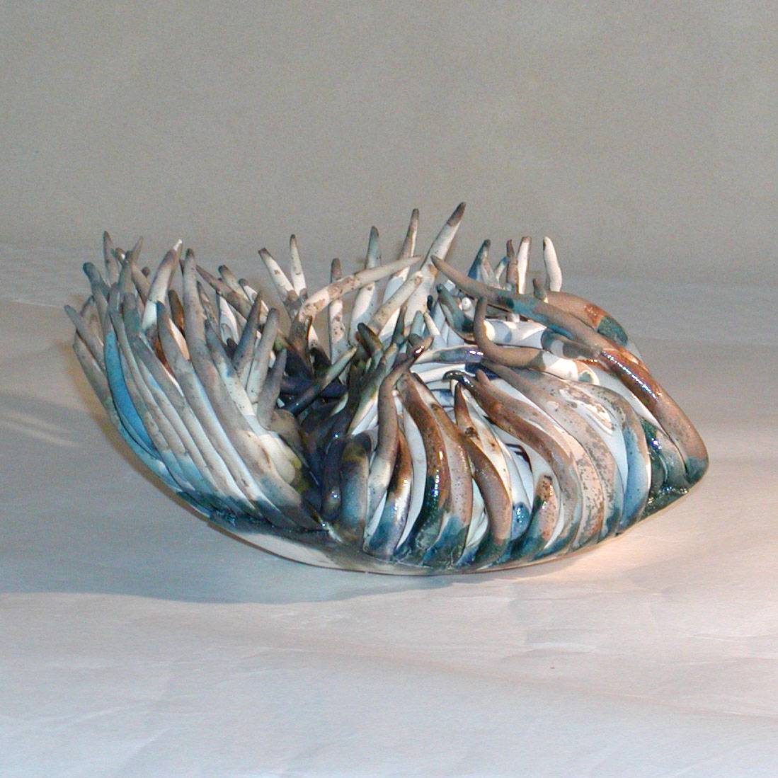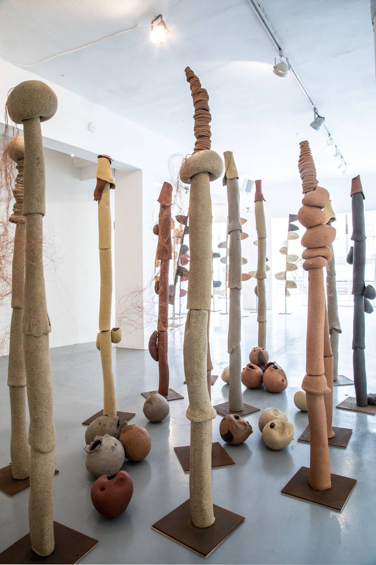 אני מציגה בתערוכה מיצב עשיר ובו גופי קרמיקה המתנשאים לגובה, כעצים המחפשים דרכם לאין־סוף וקקטוסים חשופים חפים מכל פרי, שזורים בחלקי רשת מתכת כגדר ללא פונקציה. באותו חללל מונחת קבוצת ראשים מופשטים פעורי פה, הזועקים את זעקת האדם. כל אלו מדמים טבע הרוס ושבור, ומבטאים כאב וזעקה.
