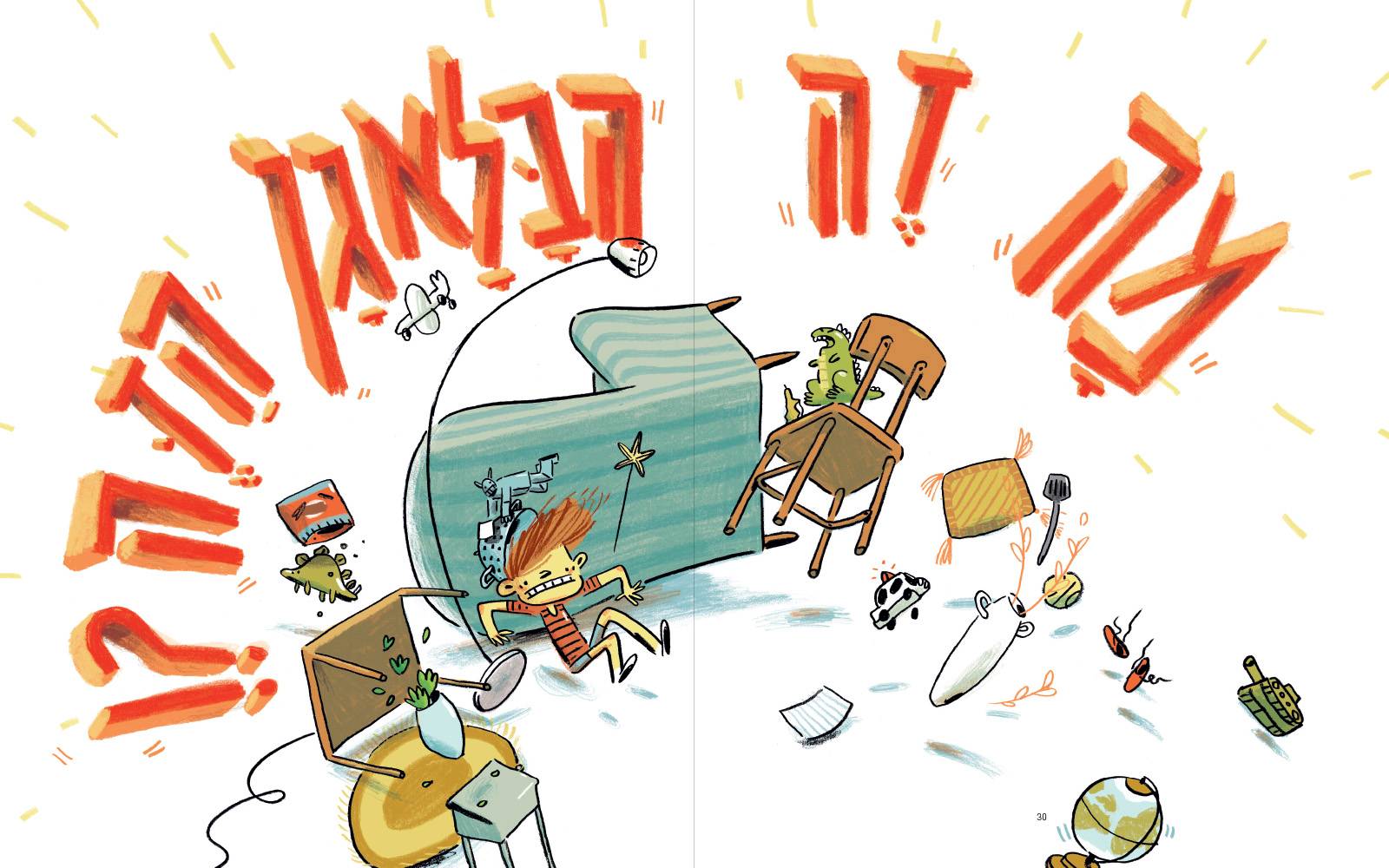 אני אוהב במיוחד גם את השבירה עם כפולות הטיפוגרפיה הידנית: ״זה שלי!״, ״אוכל״, ו״מה זה בלאגן הזה״. לגמרי החזרת אותי לגיל 5 או משהו כזה…