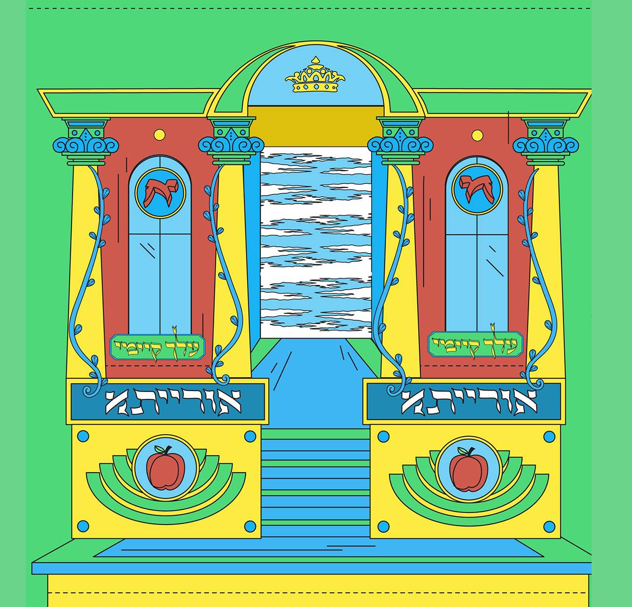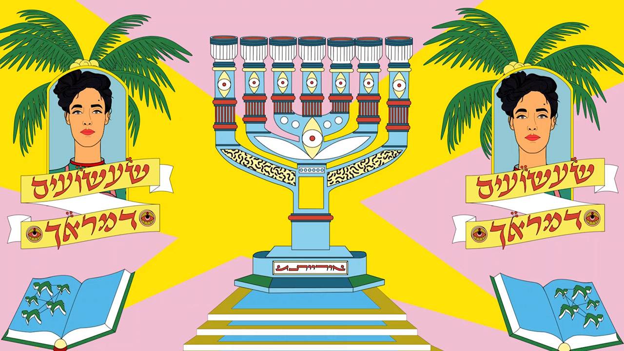 אני חושב שהפגישה הראשונה היתה בתחילת הסתיו בנובמבר. לפני לא מעט זמן… אז הכל ביחד לקח כשבעה חודשים. לפגישה הראשונה אלה הביאה ארבעה איורים שמתבססים על העיצוב הישן של בוריס שץ וזאב רבן ומתכתבים עם עולם של דגלי שמחת תורה ואריזות של נרות חנוכה בצבעוניות עזה ופסיכודלית; היה ברור שזה הטון הנכון. זה עבר עוד כל כך הרבה שינויים בדרך ודהה עם הזמן אבל בסוף לשמחתי הקליפ יצא הכי קרוב למה שהיא הביאה בהתחלה