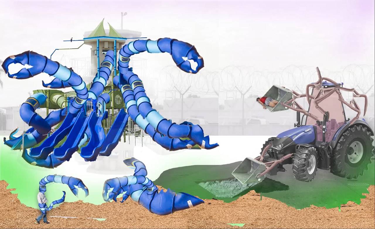 התערוכה שהייתה לי השנה בברבור הייתה סביב סיפור שכתבתי שבמרכזו רובוט, בריכה ונמלים שהם חלק ממערך אבטחה משותף שמגן על בניין מגורים של בני אדם. זה באמת קשר בלתי נתיק. אבל אני מנסה לא לנתק את העשייה שלי ואת הפן הרגשי והאישי ביחד עם הנושאים הכלליים