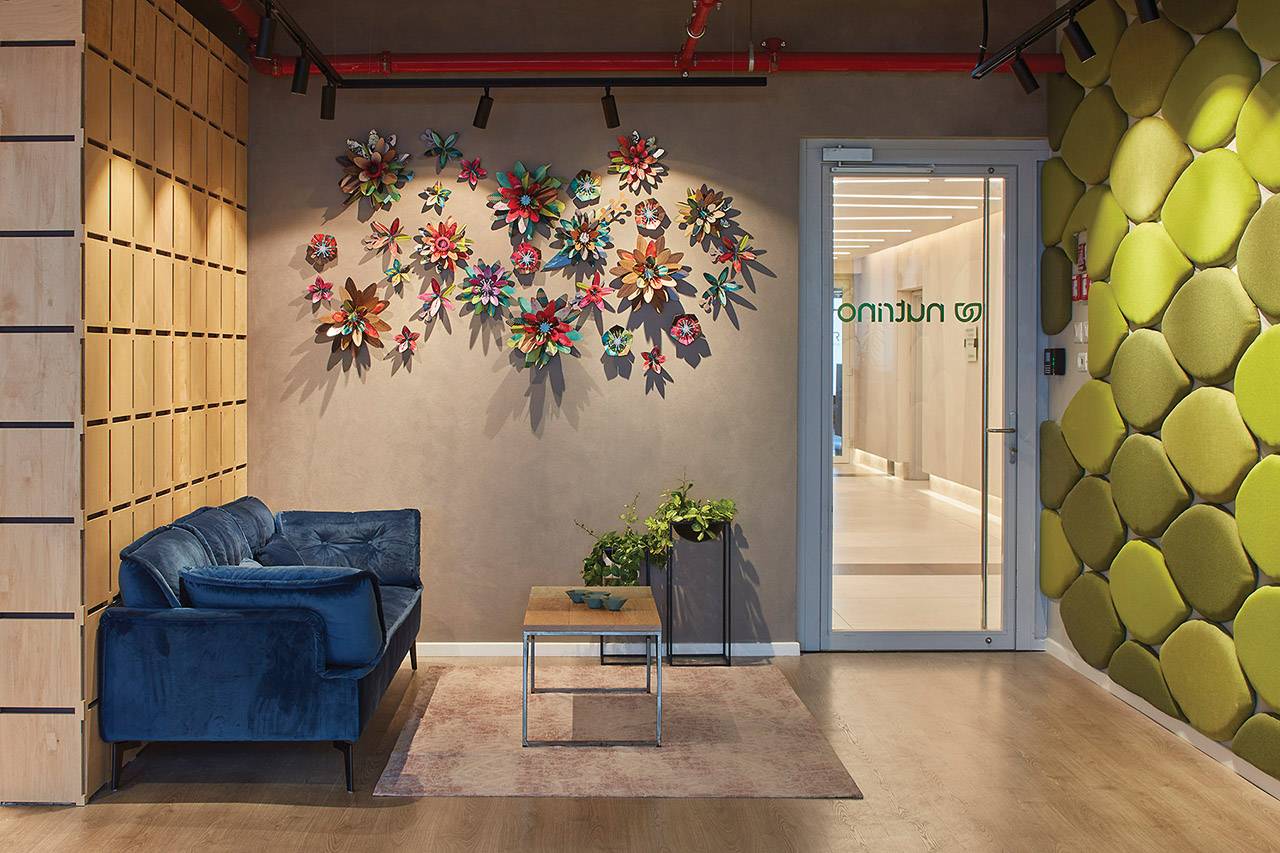 עיצוב משרדי nutrino בתל אביב, חברה שמייצרת תכניות בריאות מותאמות אישית לחולי סכרת. שטח המשרד משתרע על פני 300 מ״ר. מטרת הפרויקט היתה לעצבו מחדש כדי להתאים להתפתחות שעברה החברה ולגידול משמעותי במספר העובדים. בפרוגרמה הוגדרה יצירת חלל צעיר וכיפי, מזמין ומפנק.