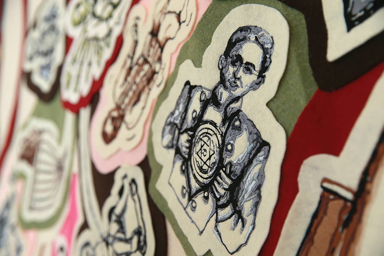 ״הרוקמת והידעונית״ – שטיח קיר ענק המוצג בתערוכת הקבע החדשה שנפתחה לאחרונה במלון יערות הכרמל (אוצר שרון תובל). התערוכה ״הבית של הלינה״ מתמקדת במושג הבית וההשתכנות. השטיח מייצג חלל ביתי ומשפחתי ועל גביו מרחפות דמויות אמיתיות/מיתולוגיות רקומות וצבעוניות, שיוצרות סיפורים ומיתוסים, בדיוק כמו שאני אוהבת. מקור הדמויות באלבומי המשפחה של סבתי, ובין סיפורי הקרובים הרחוקים אני רוקמת בדיות ושכבות של רפרנס.