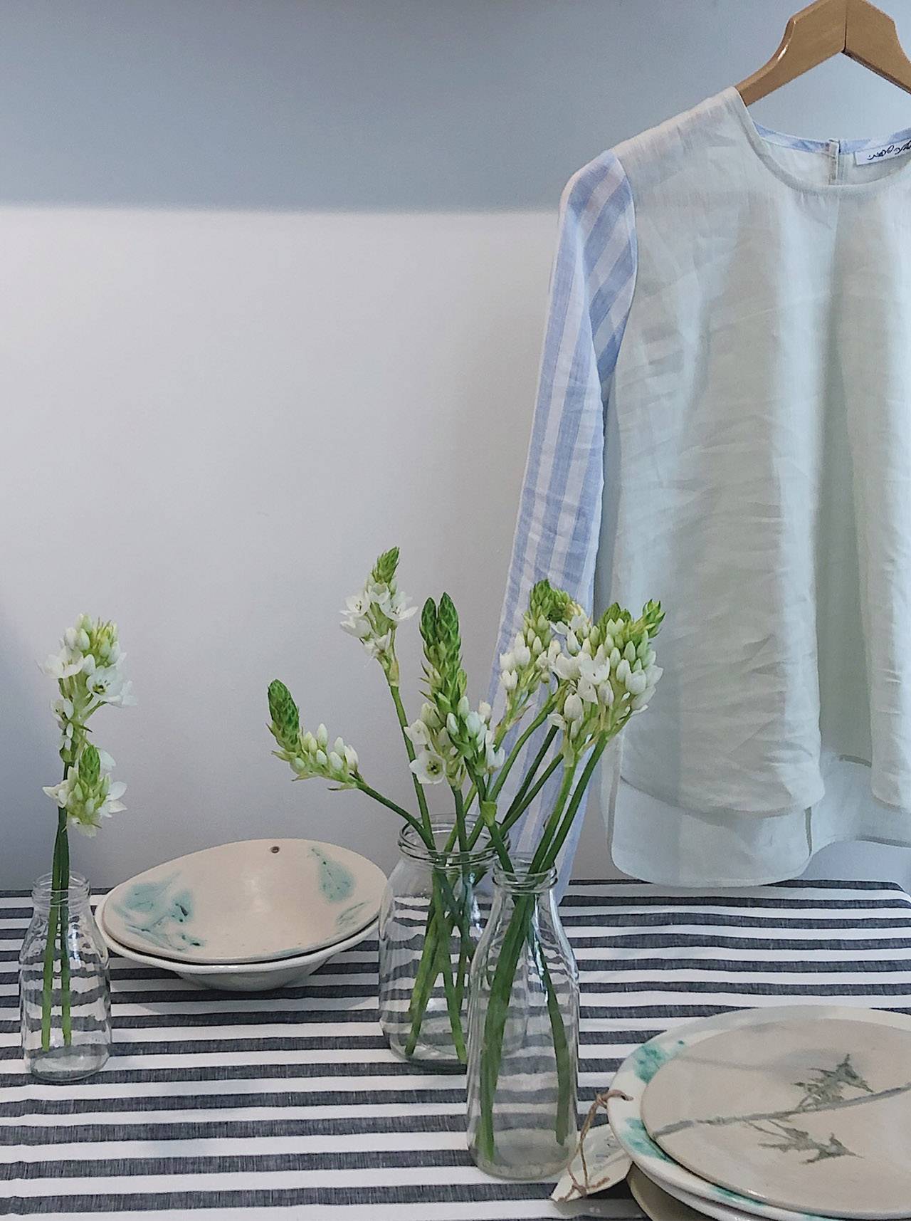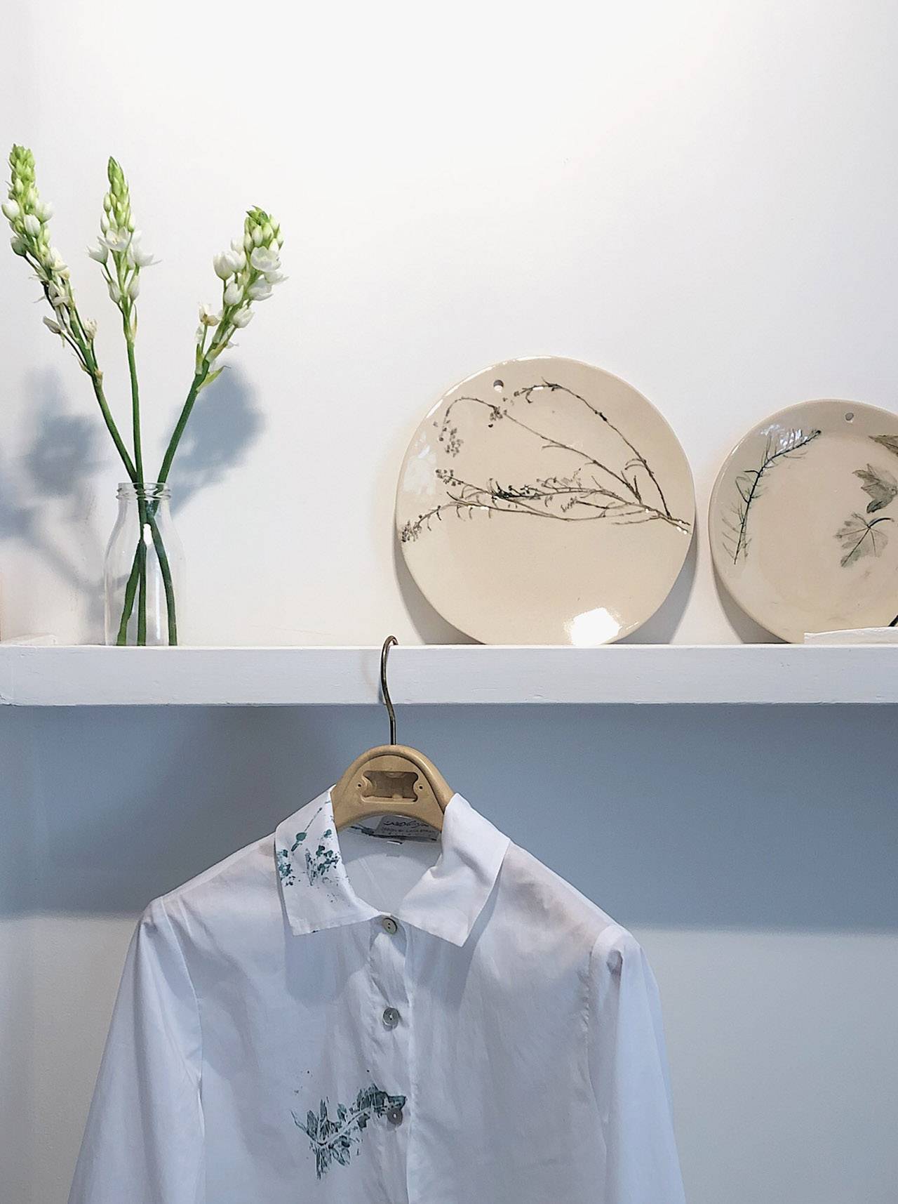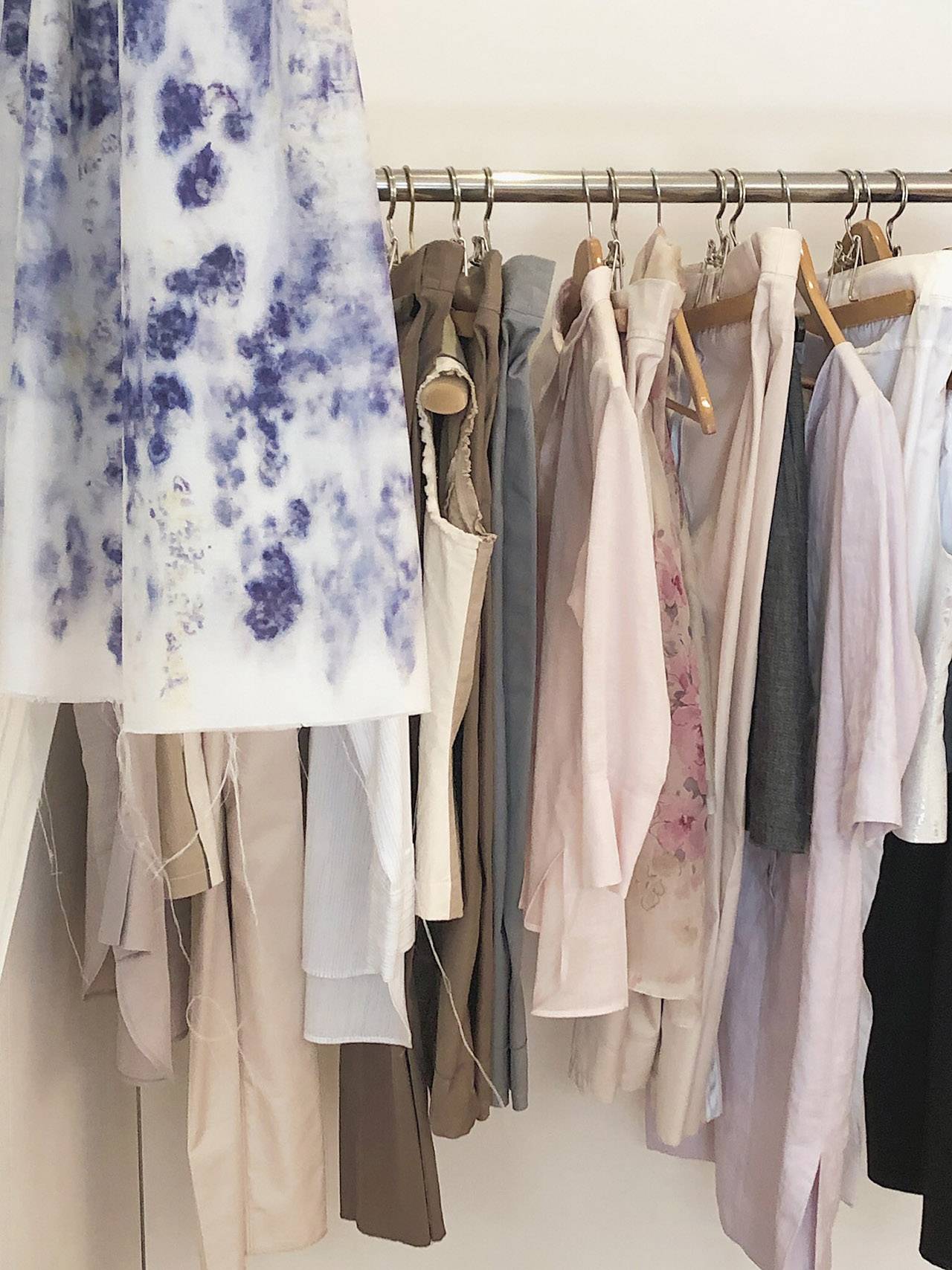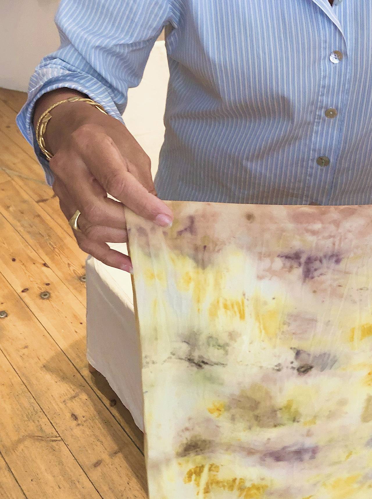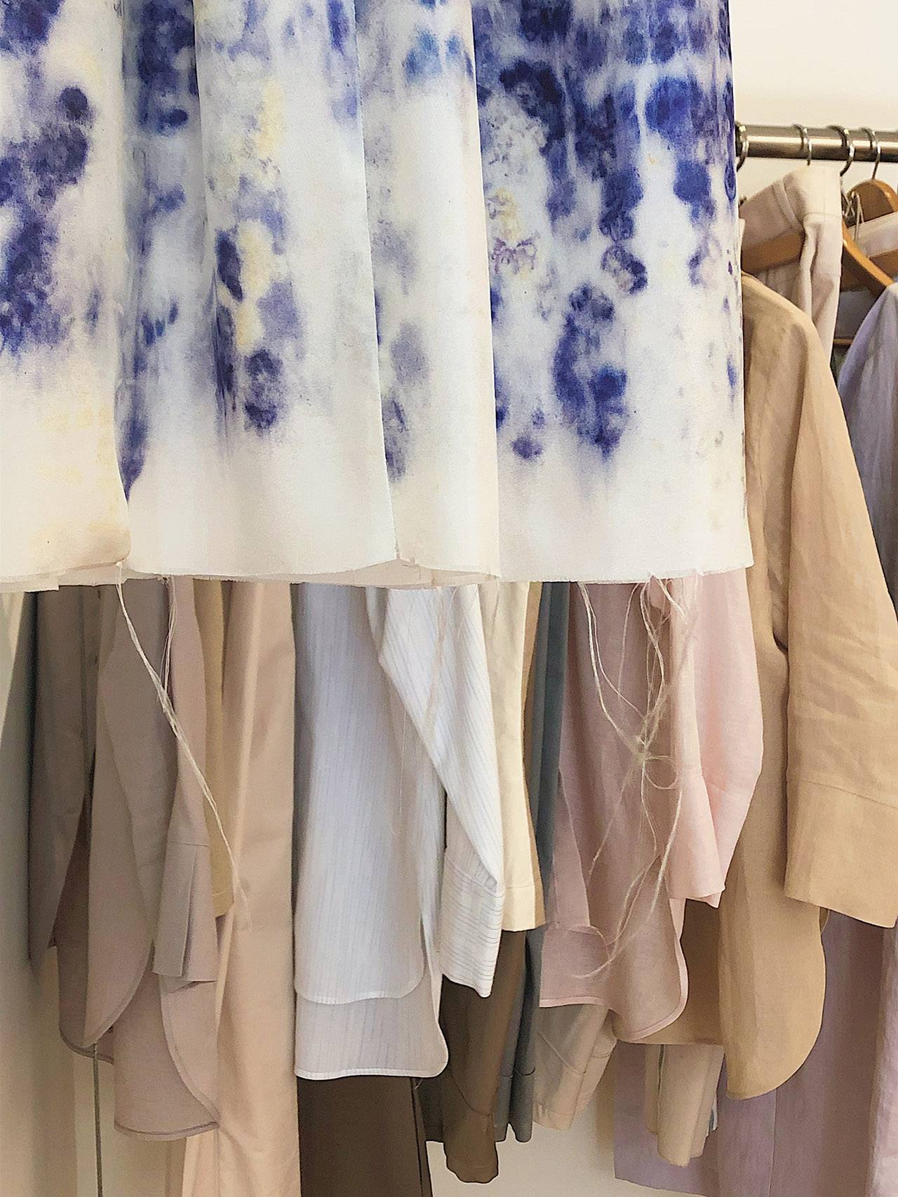 הבית באיטליה הפך למקור השראה מחשבתי ורעיוני. השאלה מה עשו האנשים שגרו פה בשנה 1300 הובילה אותי למחקר תיעודי של דרך החיים הזו, כשהטבע הוא ספריית החומרים שלי. בשנים האחרונות אני מתעדת את הנוף של היער שסביבי דרך צמחים ובדים. אני ״מציירת״ עם הצמחים העונתיים שנמצאים במרחק 40 מטר מהבית, בונה קומפוזיציה על גבי הבד ואז מתרחש תהליך הצביעה וחוסר השליטה, והבדים הללו הופכים לזכרונות של ימים בטבע. הבדים שעליהם אני עובדת כעת ישמשו אותי ליצירת הבגדים בעונת 2020 הקרובה.