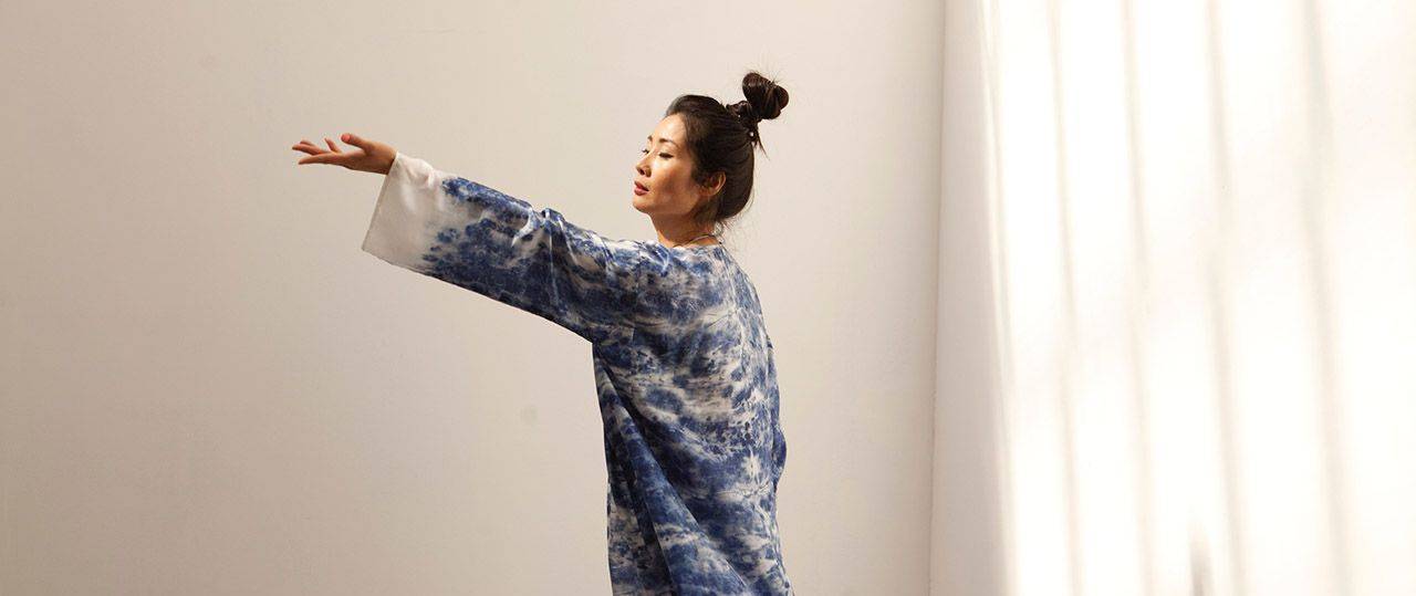 ציור יד על בד משי באמצעות פגמנטים טבעיים כחולים. צילום: אילנה אפרתי