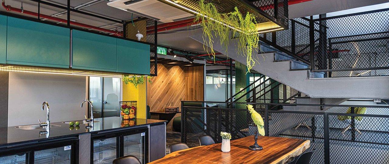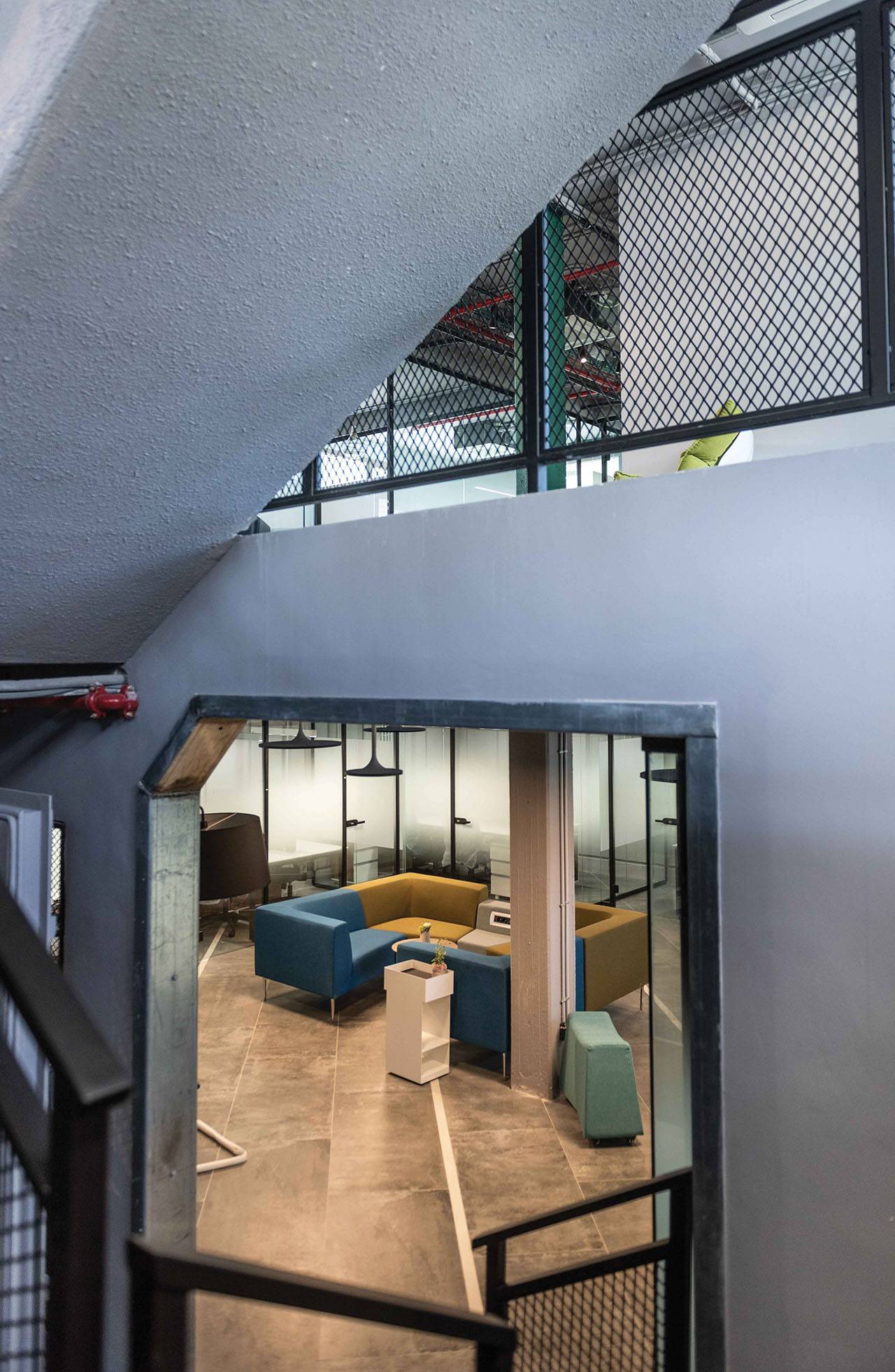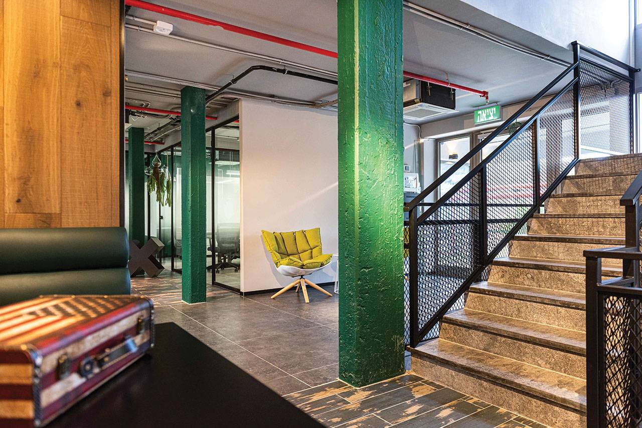 האתגר בפרויקט היה להפוך בנין משרדים בן שלוש קומות, קטן ונמוך במיוחד, לסביבת עבודה בסגנון משרדים שיתופיים, וליצור עולם צבעוני עשיר באזור של מבני תעשייה שמאופיין באפרוריות ואבק באוויר. בשלב הראשון הפשטנו את המבנה לחלוטין, כך שנשארו רק עמודים תומכים וקיר המעטפת. בהתאמה, גם בתכנון החדש יצרנו שלוש קומות: קומת מרתף, קומת קרקע וקומה ראשונה, ולכל קומה הענקנו אופי שונה באמצעות סכמת החומרים והצבעים שנבחרה עבורה.