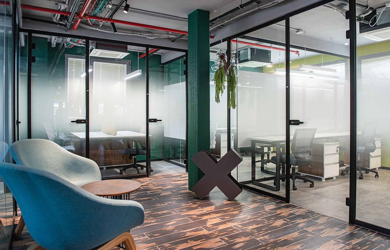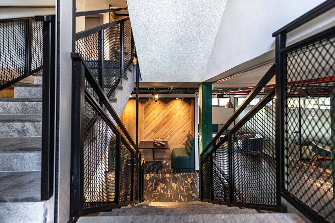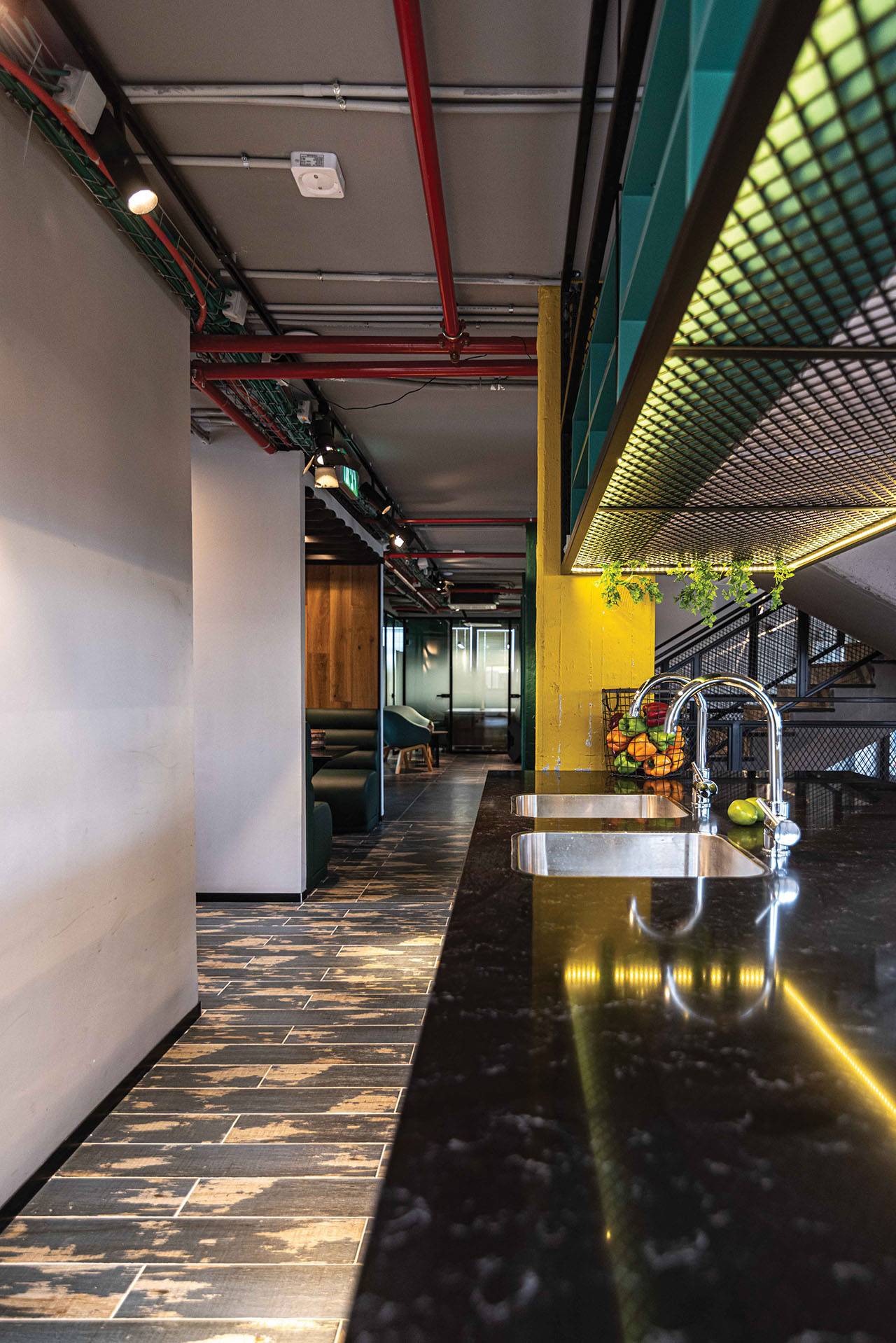האתגר בפרויקט היה להפוך בנין משרדים בן שלוש קומות, קטן ונמוך במיוחד, לסביבת עבודה בסגנון משרדים שיתופיים, וליצור עולם צבעוני עשיר באזור של מבני תעשייה שמאופיין באפרוריות ואבק באוויר. בשלב הראשון הפשטנו את המבנה לחלוטין, כך שנשארו רק עמודים תומכים וקיר המעטפת. בהתאמה, גם בתכנון החדש יצרנו שלוש קומות: קומת מרתף, קומת קרקע וקומה ראשונה, ולכל קומה הענקנו אופי שונה באמצעות סכמת החומרים והצבעים שנבחרה עבורה.