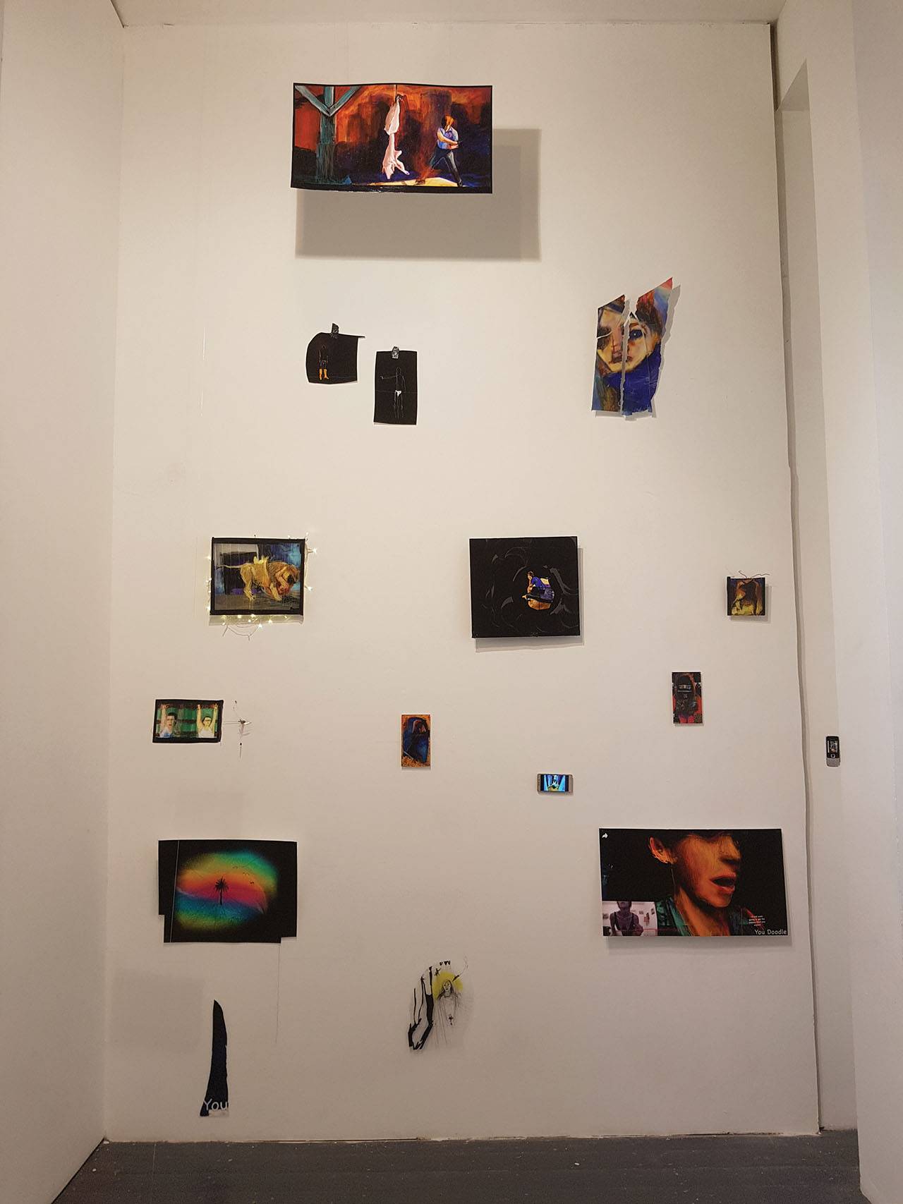 התערוכה השנייה, זוהר מסכים, מוצגת בגלריה אלפרד, ובה אני מציגה קיר מיצב יחד עם שירה קמרד, שחר סריג ודגנית אלקיים. קיר המיצב עשוי מאוביקטים שונים; תלת־ממדיים, דו־ממדיים, גרפיים ודיגיטליים. כל האוביקטים הם גלגולים נוספים של ציורים שציירתי בטלפון בשנה האחרונה. בכל הציורים השקעתי המון המון עבודה ושילמתי בכאבי צוואר, אצבעות, עיניים וראש, ואז הם הפכו לדברים אחרים, בצורות שונות ובגדלים שונים, והוצבו על הקיר ובמרחקים שונים ממנו.