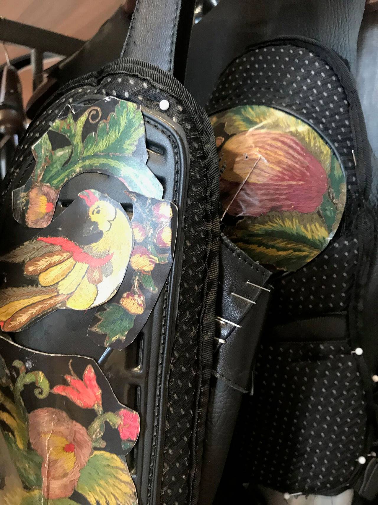 הפריט השלישי שלכד את תשומת הלב מורכב מז׳קט עור ושמלה מבד אלסטי. דגם זה שואב גם הוא השראה מטקסטילים שנמצאו מהתקופה הוויקטוריאנית ושריונות שונים עם ציורים מאסיה. הז׳קט מעוטר בפרחים שצוירו בציור ידני, שעליו עבדה אמנית הסטודיו שציירה בטכניקה של שכבות את הז׳קט כולו (הצבע הלבן ראשון וכן הלאה). לז׳קט הרבה נסיונות בחומרים שונים, טקסטורות ודוגמאות של פרחים.