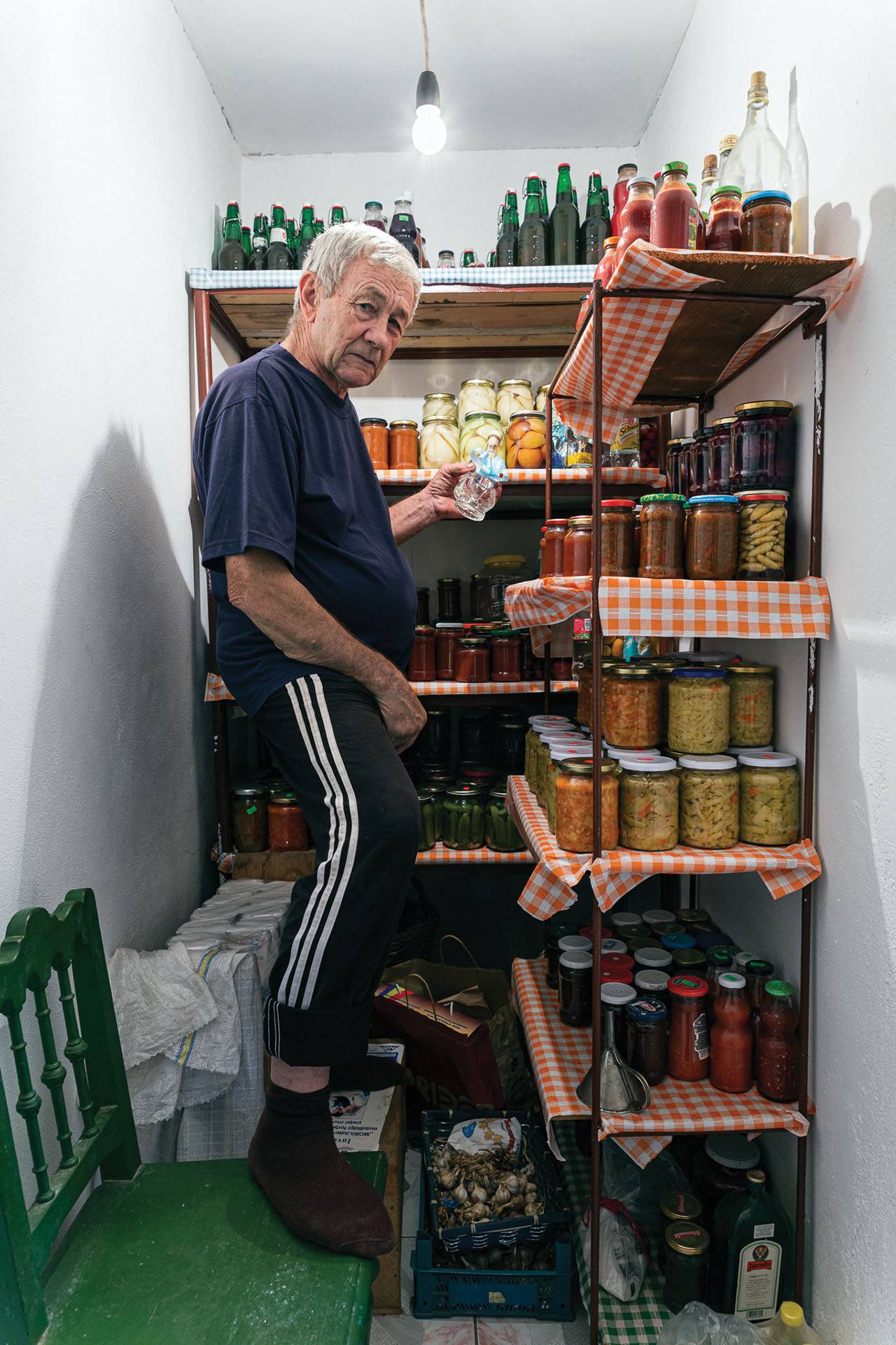 ״זיכרון אחד נותר חד בזיכרוני. נסענו בשבילי עפר, עלינו על גבעה ועצרנו לאכול אוכמניות בצד הדרך. לפתע הגענו לעולם השייך לעבר, באר־מים, תנור חימר, רפת ושירותים אליהם צריך ללכת עד לפינה רחוקה בשדה. התרוצצתי ושחקתי בין גבעולי התירס, שתיתי חלב שחלבתי מהפרה – נדמה היה לי שהזמן עצר מלכת״. קרובי משפחה ומכרים רחוקים, קשישים בבדידותם, ממלאים את צילומיו שנראים כשלוחי מבטו של ילד סקרן, שהפך לבוגר בעל מבט עדין וחומל.