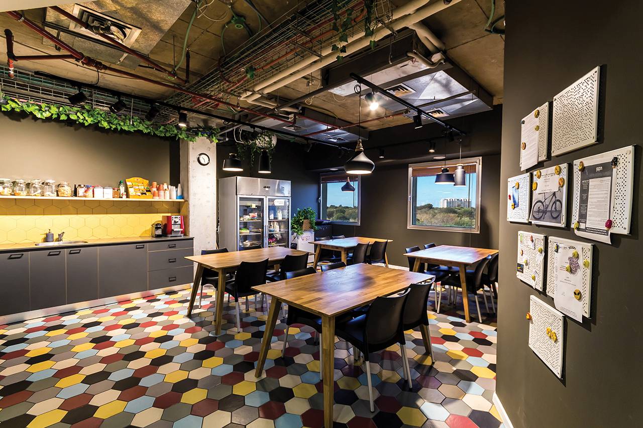 שדרת הכניסה מכילה בשטחה את עמדת הקבלה ואת משרדי המכירות של החברה, לצד חלל ישיבות אלטרנטיבי, והמטבח הפתוח נועד לאפשר מפגשים ואינטראקציות חברתיות לאורך כל שעות היום. בשדרה האחורית תוכנן חלל פתוח לצוותי הפיתוח, וכן אזור אלטרנטיבי לישיבה א־פורמלית או עבודה על שולחנות עמידה, שמשמש גם לכינוסים של כל עובדי החברה ומהווה חלל משמעותי במשרד.