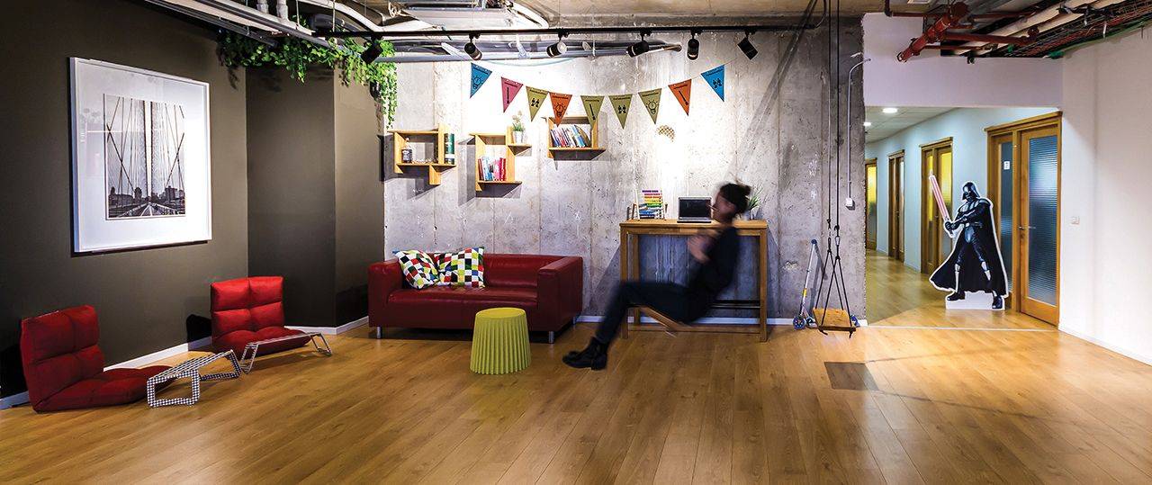 השפה העיצובית מזוהה עם מיתוג החברה, וצבעי הלוגו שלה הכתיבו שימוש בפלטת גוונים שקיבלה ביטויים שונים ברחבי החלל, בהם צביעת הקירות, פרטי הנגרות ואלמנטים נוספים. האווירה שנוצרה במשרד נינוחה ושמחה; העובדים מציירים על הקירות, מתניידים בהנאה על קורקינטים או מתנדנדים בחלל הפתוח.