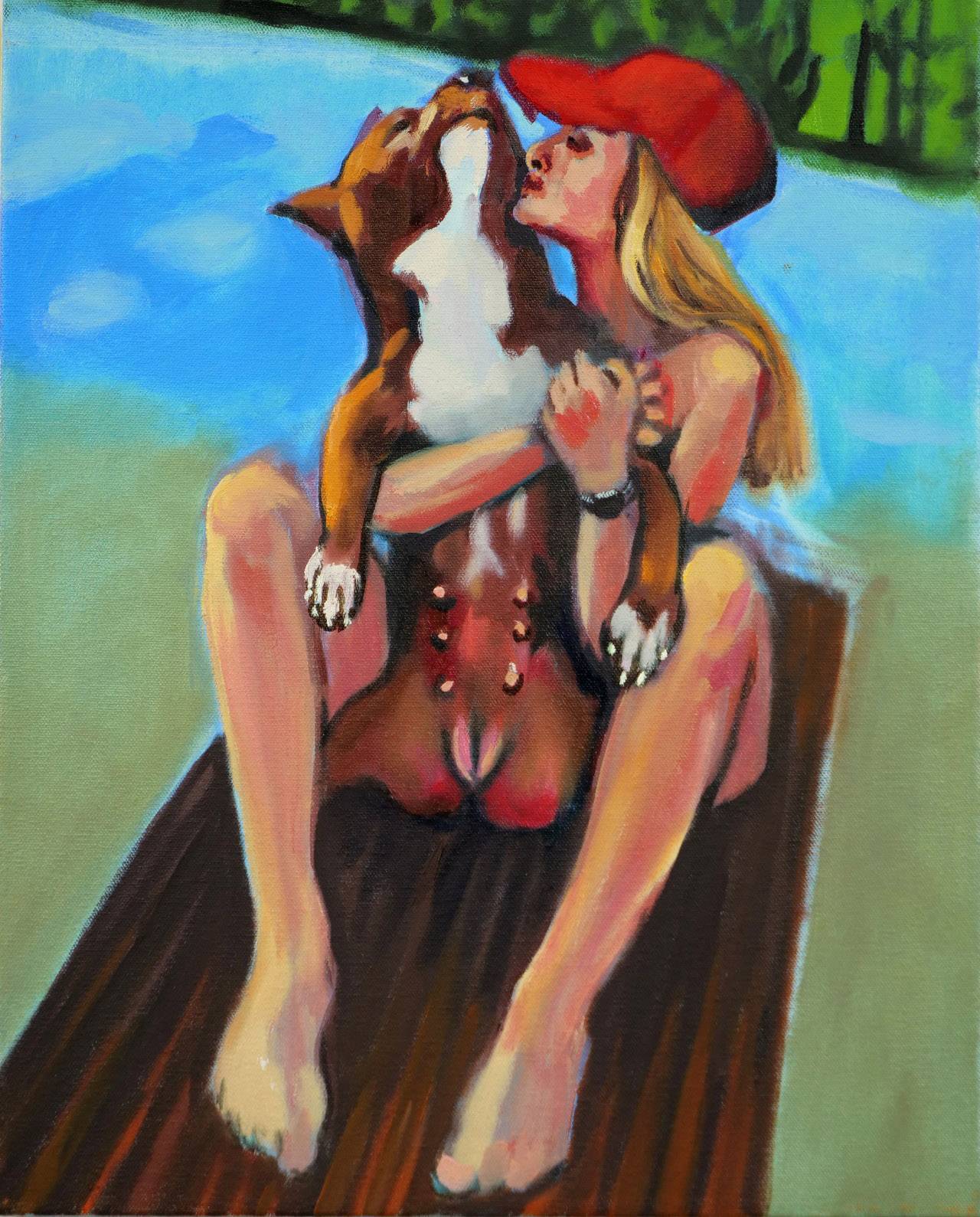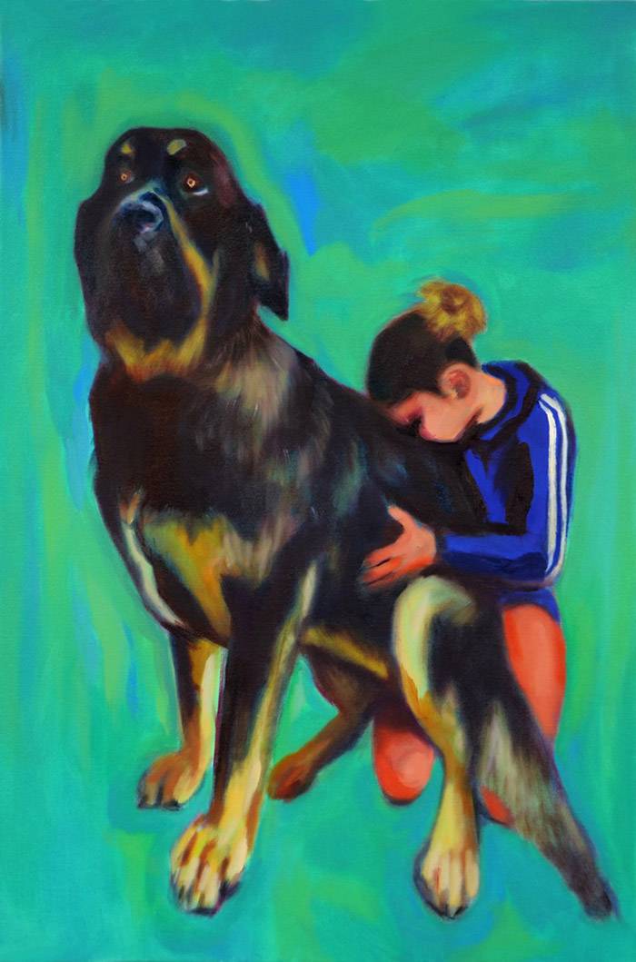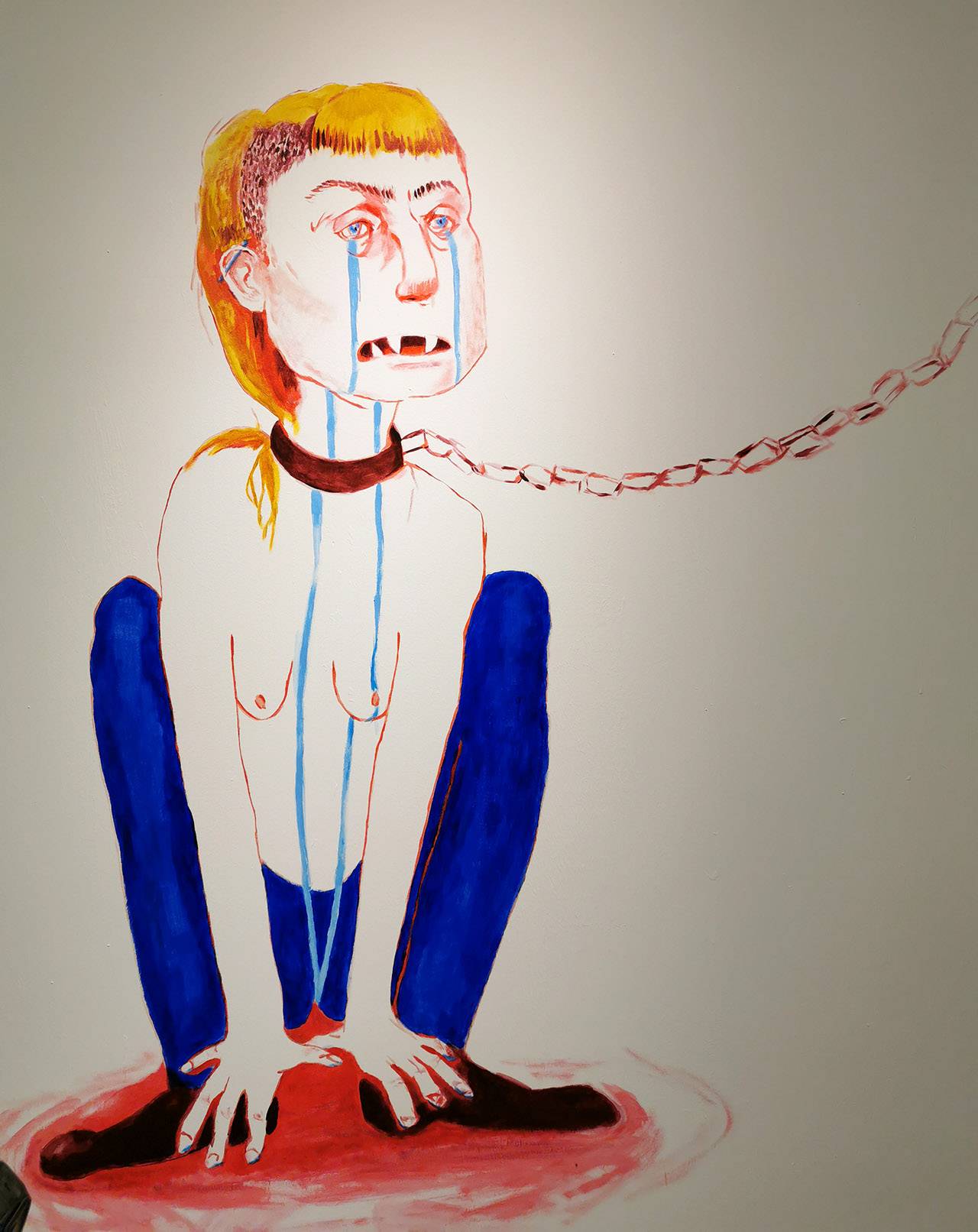 ניסחת יפה: כבר מספר שנים שאני מתעניינת בדימויים שכוללים פעולות כוחניות או דמויות שבכוחן להכפיף אחרים; תהליך שכולל איסוף מתמיד של רפרנסים מהרשת. הציור מהווה עבורי טריטוריה שבה אני יכולה לתהות אודות יחסי הכוחות שלי אל מול העולם ולשאול שאלות שהיו מסכנות אותי כאישה צעירה ״בעולם האמיתי״. במרבית המקרים אני לא מנסה להתריס, אלא לנסח תהייה כנה באמצעות הציור. בשנה האחרונה התחלתי להתמקד במושג ״כלבה״ (bitch) – מילה שכיחה בשיח היומיומי והשימוש בה מגלם יחסי כוחות הפכפכים