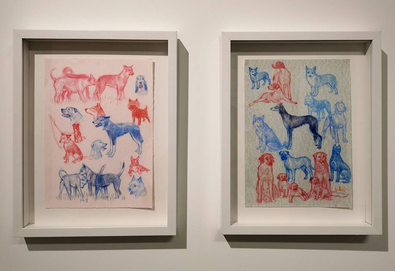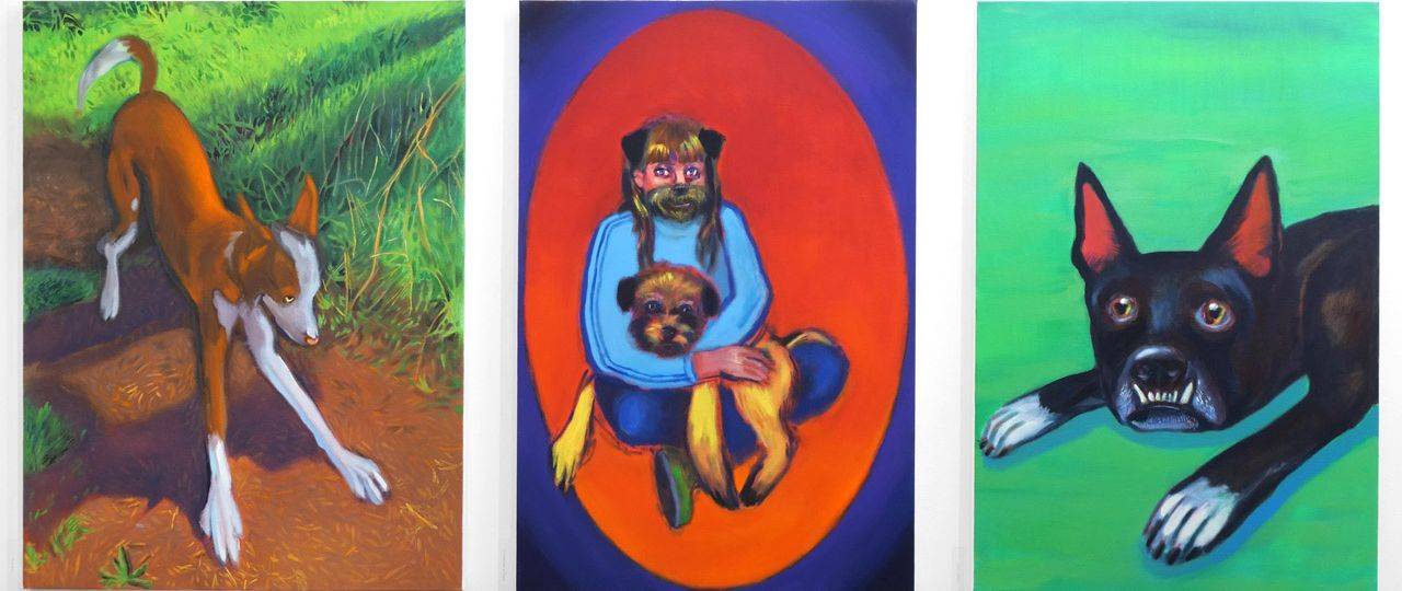 לעומת זאת, ציורי השמן, שעבדתי עליהם במקביל, פועלים ברצף אחר – הם לא מתפקדים כמיצב, אלא כלהקה של ציורים, להקה של כלבות