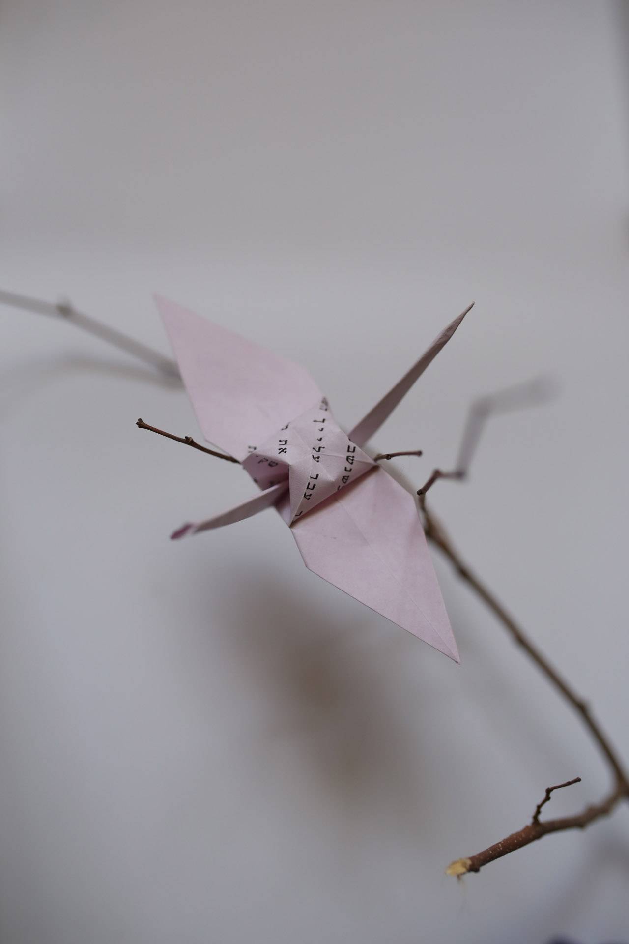 נכון מאוד. תערוכה שנפתחה ביום ראשון בשעה טובה. מרגש להציג מיצב שאני עובדת עליו כבר לא מעט זמן, שמחבר בין הכתיבה והקיפול. המיצב מורכב מכ־200 דפי שירה שאני כתבתי בשנים האחרונות (רובם שירים קצרים) המקופלים לעגורים ותלויים על ענפי עץ כדימוי לציפור שיר, וכחיבור לעגור ולמה שהוא מסמל. בכל שיר שנכתב אני רואה משאלה/בקשה של הלב, וכך גם במסורת היפנית: מי שמקפלת 1,000 עגורים המשאלה שלה תתגשם, אז אני עוד בדרך אפשר להגיד