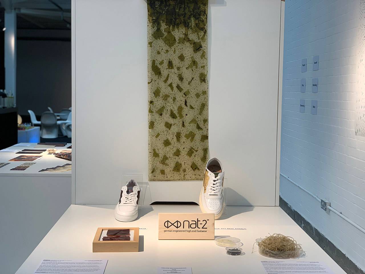 הצגתי שם פרויקט חדש שנולד מתוך שיתוף פעולה עם מעצב הנעליים הגרמני Sebastian Theis. לאחר שסיימתי את לימודי בבצלאל, ממש לפני כמה חודשים, פרויקט הגמר שלי התגלגל במדיה ונוצרו קשרים ושיתופי פעולה חדשים הקשורים בחומרים וביריעות שיצרתי מאצות ים. אחד מהם היה עם סבסטיאן: יחד עבדנו על עיצוב של נעלי סניקרס שנעשו במלואן בעבודת יד, ובטכנולוגיות וחומרים מקיימים. האצות משתלבות בנעליים כפרט עיצובי שטמון בו הסיפור הייחודי של החומר
