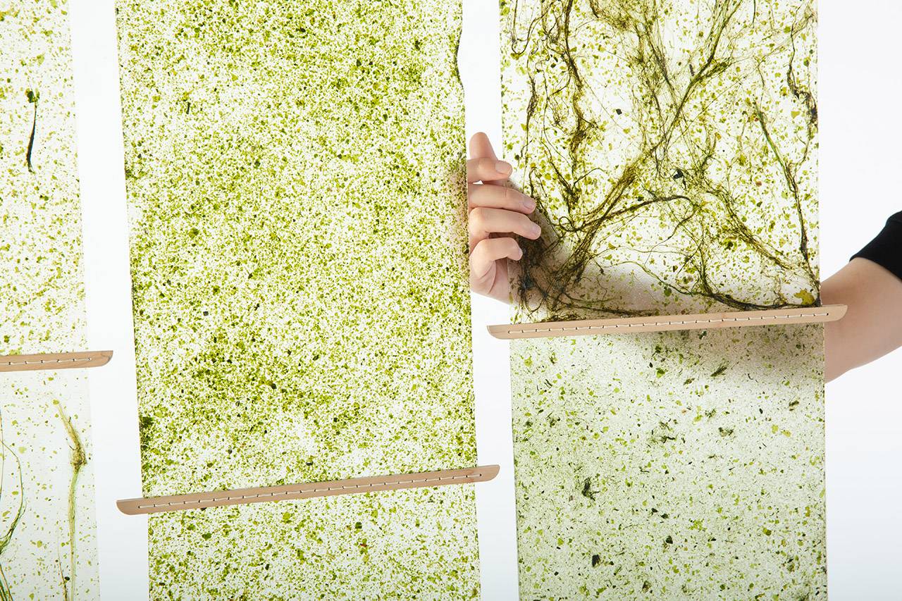 מפרויקט הגמר בבצלאל - דרך ורשה, לונדון, אדינבורו וחולון - דניאל אלקיים משתמש באצות כדי ליצור יריעות, חיפויים ונעלי סניקרס