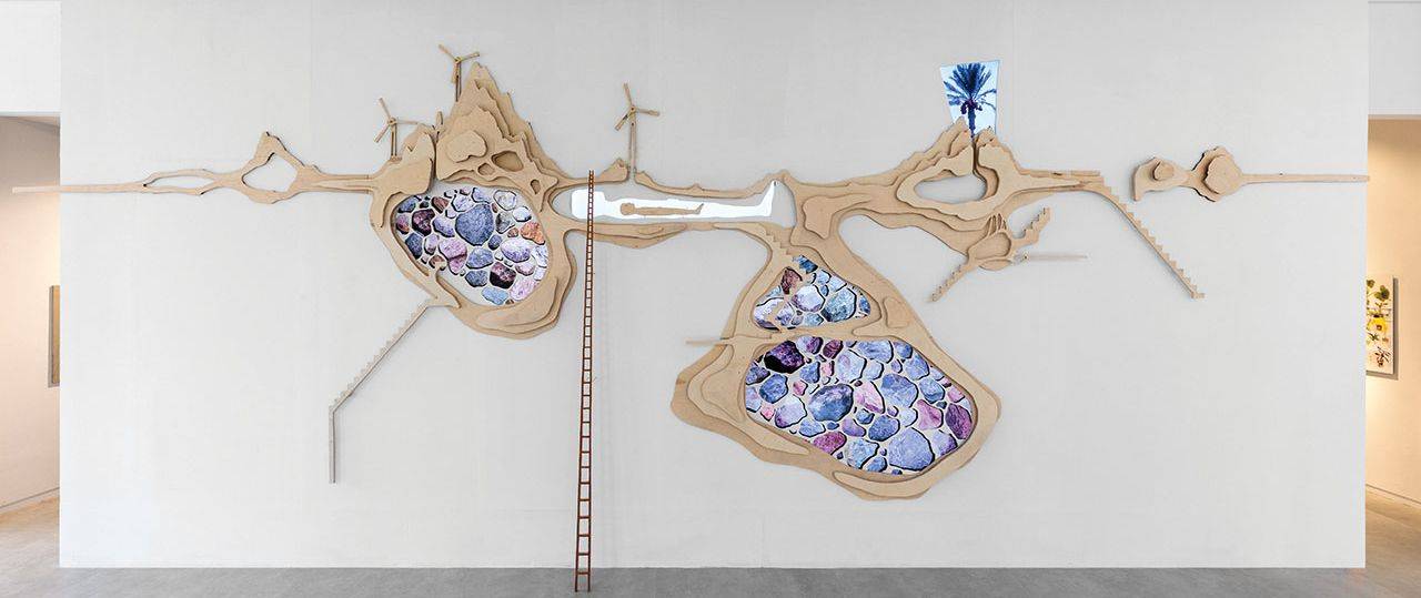 ההיברידיות הזו מתרחשת גם בין סוגי מדיה שונים כמו וידאו ופיסול, וגם התבליט עצמו הוא מצב של בן־כלאיים של דו־ממד ותלת־ממד. העבודה נוצרה במיוחד עבור תערוכת הפתיחה של הגלריה העירונית החדשה ברמת השרון, שעוסקת בטרנספורמציה של אדמה, של טבע ושל נוף ירוק. היא נבנתה במיוחד עבור קיר גדול שמצד אחד הוא הקיר החיצוני לחדרי הגלריה הפנימיים, ומצדו השני הוא חלק מחלל הגלריה ונסגר באמצעות קיר זכוכית גדול היוצר ויטרינה עצומה.