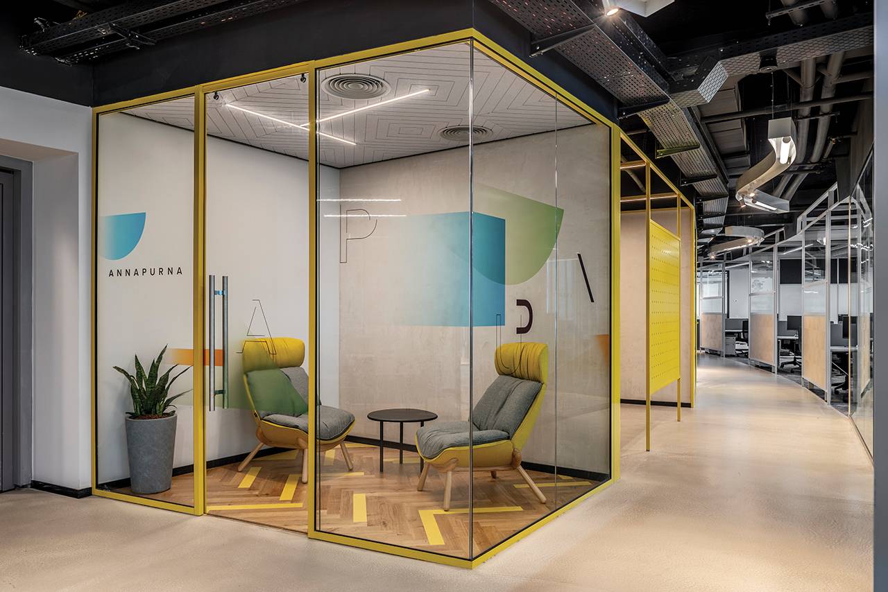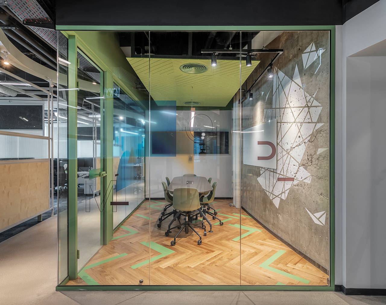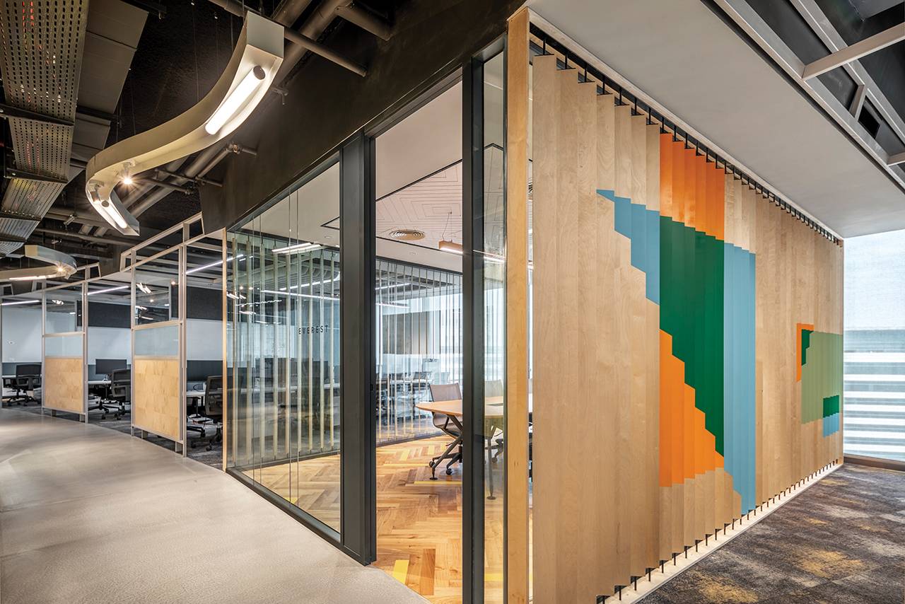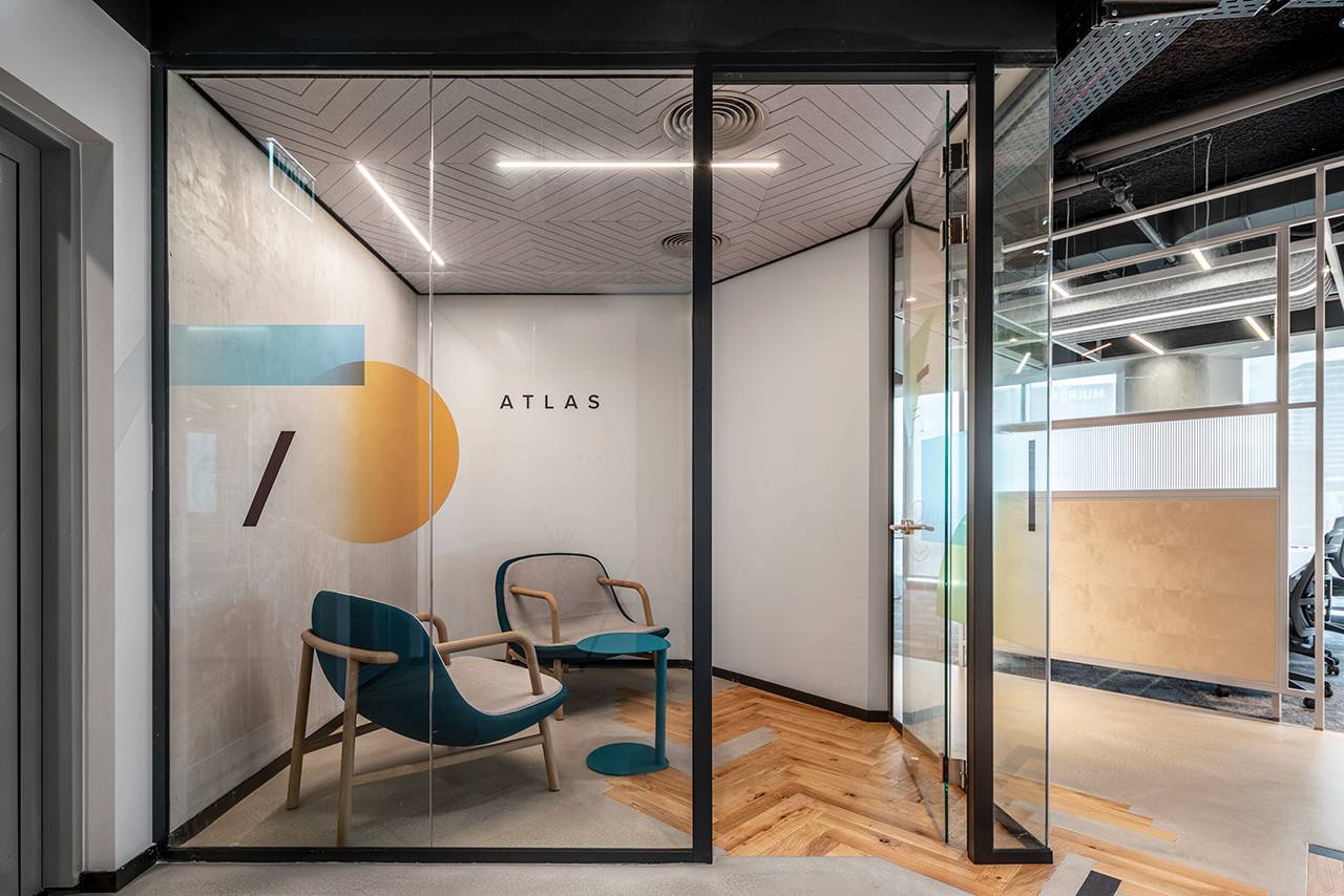 בנוסף למתחמים אלה תוכננו למעלה מ־15 חדרים שתומכים בחלל האופן־ספייס, ובהם חדרי ישיבות, חדרי סיעור מוחות, חללים המיועדים לישיבות אינטואיטיביות ומהירות וחדרים לישיבות של אחד־על־אחד. חללים אלה דורשים אקוסטיקה מושלמת, ולהשגתה בחרנו במערכות מחיצות רצפה־תקרה (חברת מיידסק) שיוצרו ייעודית עבור הפרויקט: מהן מחיצות בזיגוג יחיד ומהן בזיגוג כפול, בהתאם לצרכי החדר. על מנת לשמור על שקיפות מרבית שילבנו במערכות בעלות הזיגוג הבודד דלתות הזזה מזכוכית שקופה, ובאזורים בהם נדרשה אקוסטיקה גבוהה יותר שילבנו מערכת מחיצות בזיגוג כפול עם דלתות ציר שקופות. פרופילי המחיצות נצבעו בשלל גוונים בהתאם לפלטת הצבעים של הפרויקט עם התאמה מלאה של הפרזולים והידיות.