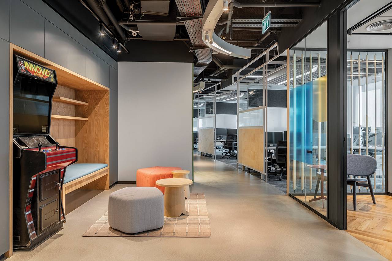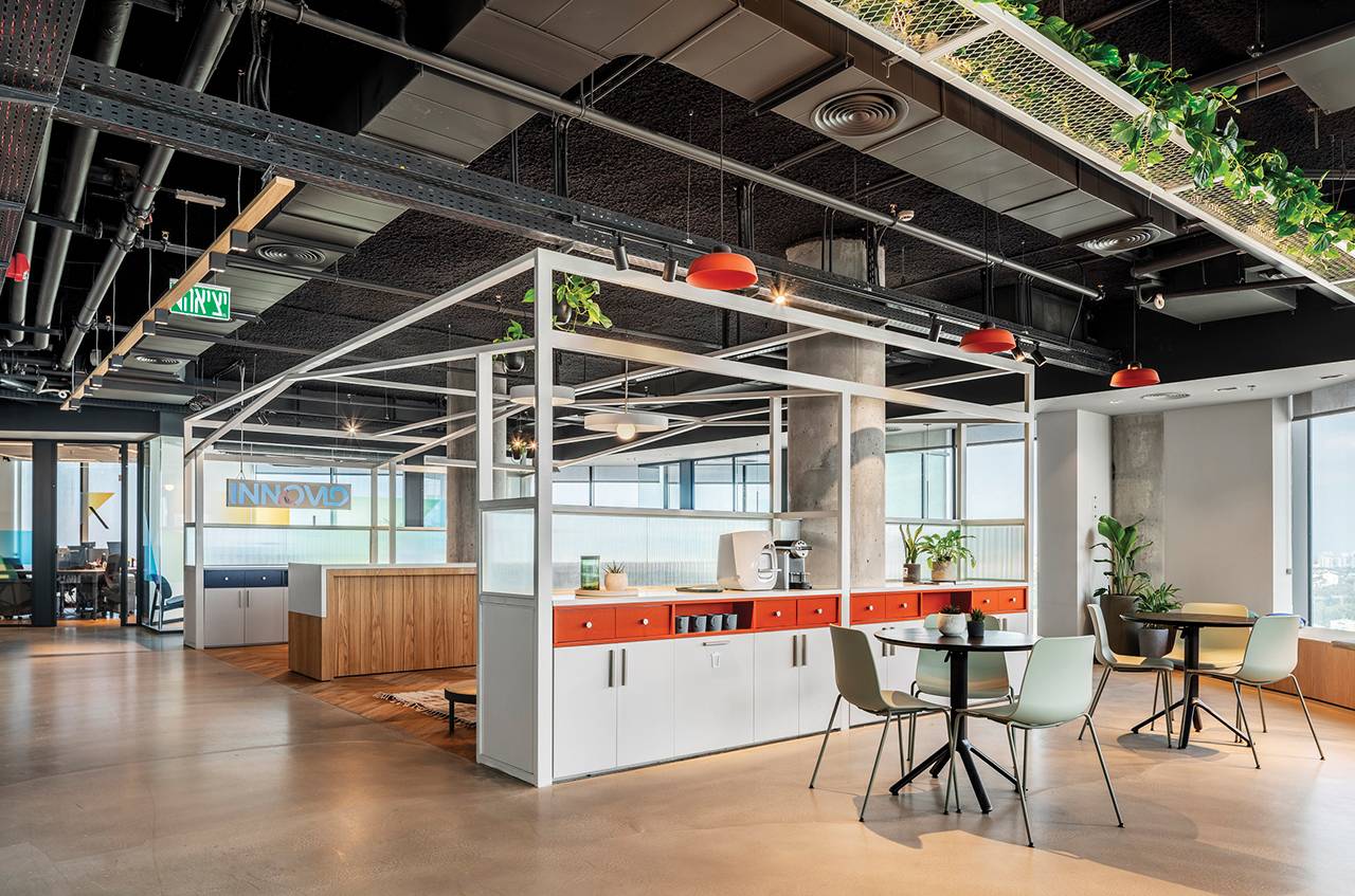 באזור ה־open space יצרנו מתחמי עבודה אינטימיים ושקטים המיועדים לכשישה עובדים, אך אינם סגורים באופן מלא; החלוקה היא נטולת דלתות, הפרדות וקירות בין החללים, ומייצרת חוויה אורבאנית ואוורירית שמאפשרת לעובדים לנוע בחופשיות בין הפונקציות הפרטיות לאלה המרחביות והציבוריות.