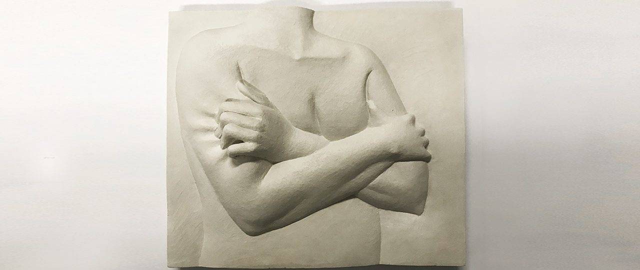 מבין 3,000 ההצעות שקיבלנו בעקבות הקול הקורא שפרסמנו לקראת הביאנלה, היו כמה שמשכו את העין שלי מהרגע הראשון. ביניהן שתי עבודות של שתי יוצרות שלא הכרתי קודם לכן, שכבר בדימוי על מסך המחשב מצאתי את עצמי חוזר אליהן שוב ושוב. אני חושב שהראשונה היתה Pinched של זיו צפתי: עבודה לא גדולה במיוחד (אם אני זוכר נכון משהו כמו 40/40 ס״מ), גוף אנושי עשוי מחמר בהיר, חתוך מהפופיק פחות או יותר ועד הצוואר. שתי הידיים משולבות וצמודות לחזה, יד שמאל צובטת את זרוע ימין.