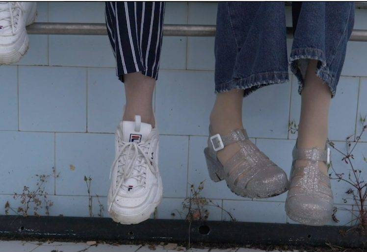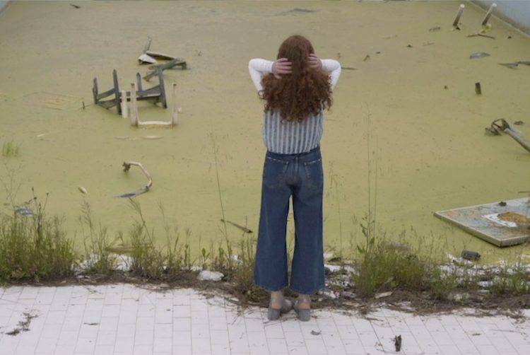 בסצינה שצולמה בבריכה רצינו להעביר אווירה יותר חולמנית של משחק ותום. ניסיתי להשתמש בזוויות שונות: צילומי טופ שוט (מלמעלה) כשהילדות שוכבות על הרצפה ומסתכלות לשמיים, או צילום בוטום שוט (מלמטה) כשהילדות יושבות על מעקה הבריכה ומסתכלות למעלה. פלטת הצבעים בסצנה זו היא כחולה. השתמשנו בכל מיני סוגי ג׳ינס, הנותנות לסצנה אווירה יותר משוחררת וכיפית.